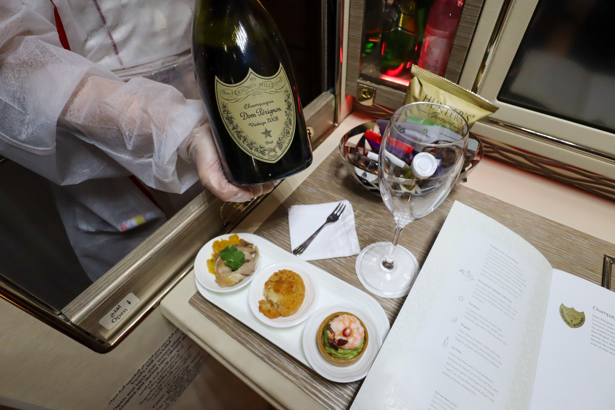 For now, I restricted myself to a diet of a granola bar and bottled water, as I was saving stomach room for the upcoming Emirates First Class extravaganza.