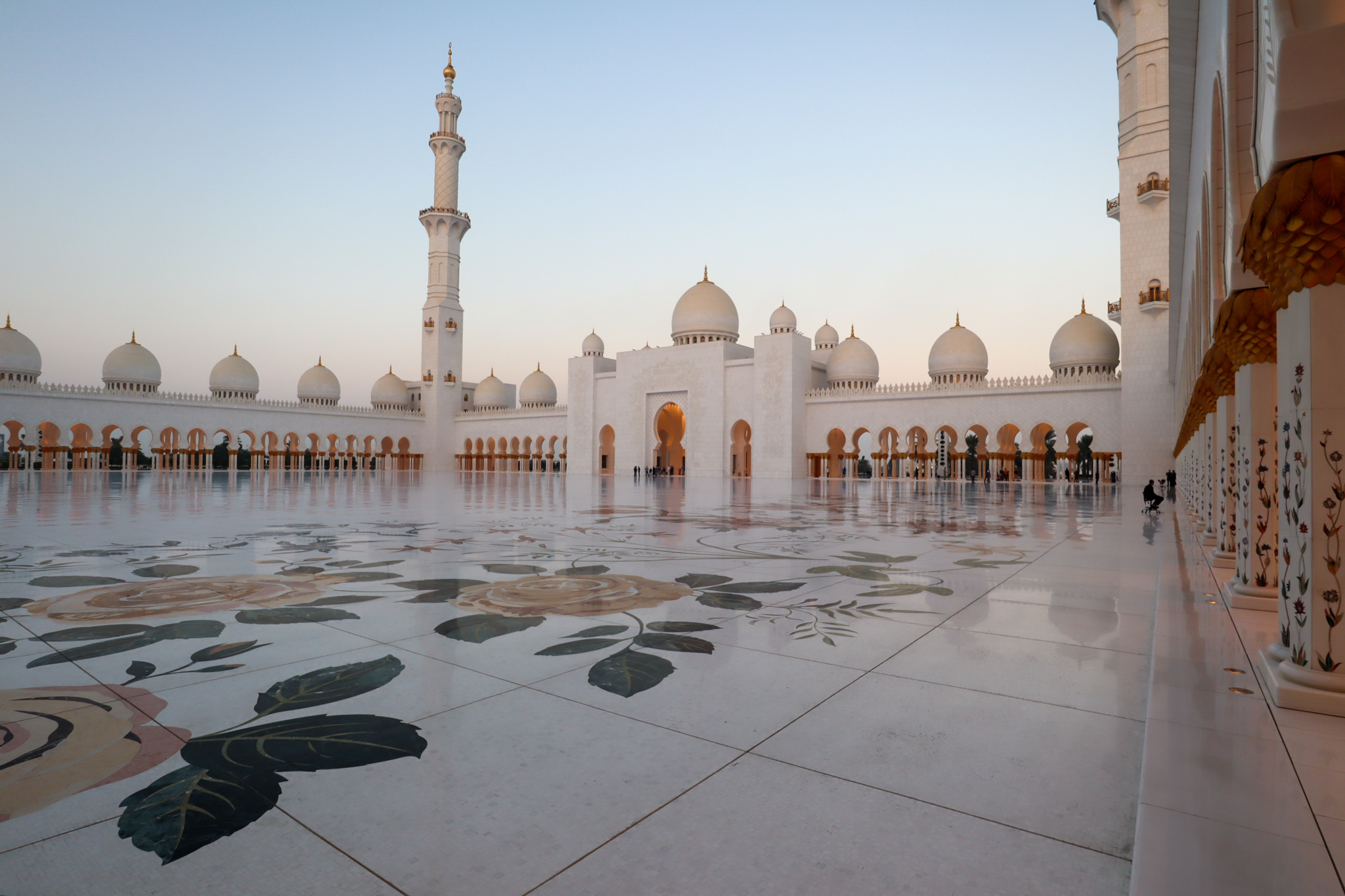 Built out of 100,000+ tons of marble and boasting both the world’s largest marble mosaic with its central floral pattern and the world’s largest carpet in its interior worshipping area, the Sheikh Zayed Mosque is an absolute marvel to behold.