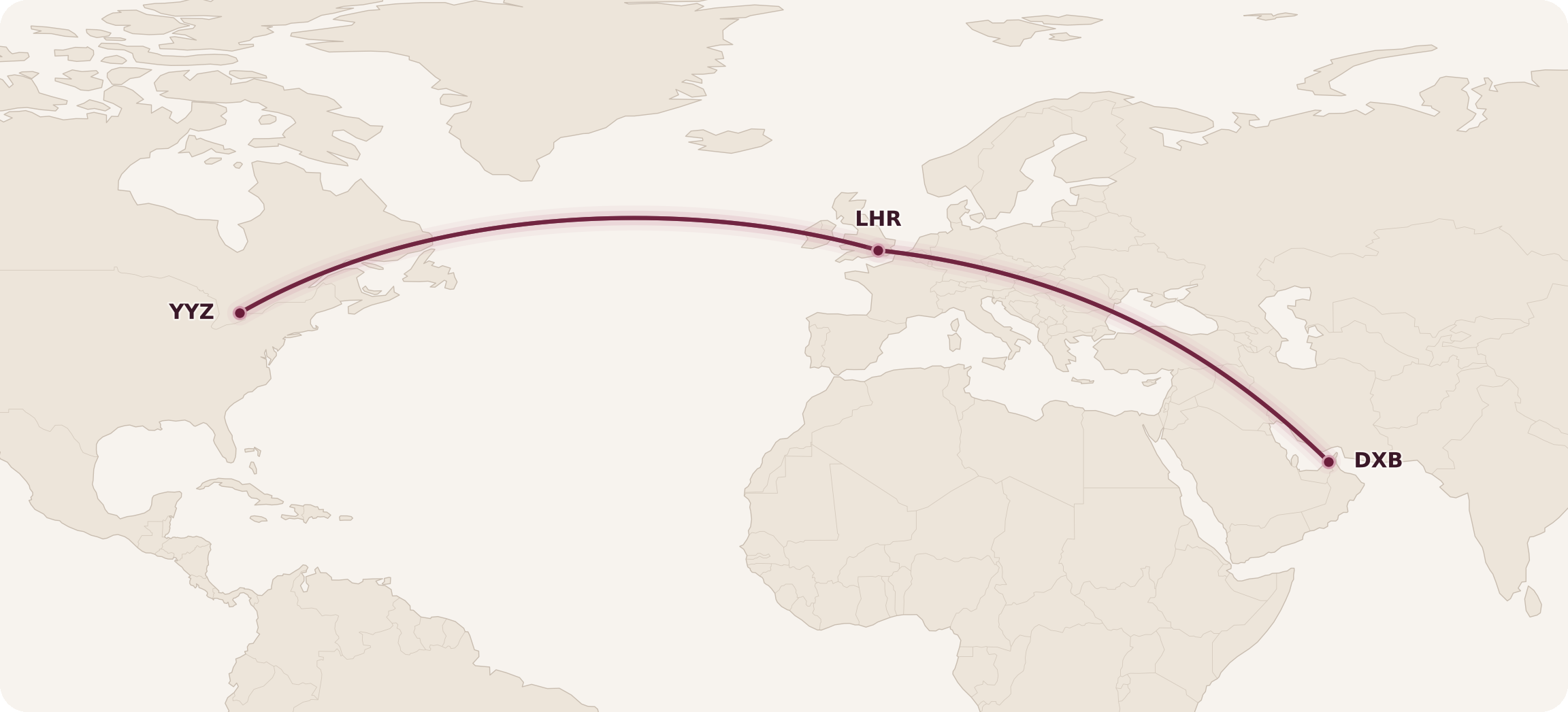 - I could fly Dubai–Zurich–Montreal–Toronto on Swiss business class for 85,000 Aeroplan points, but that would have me departing Dubai much earlier than I wanted.