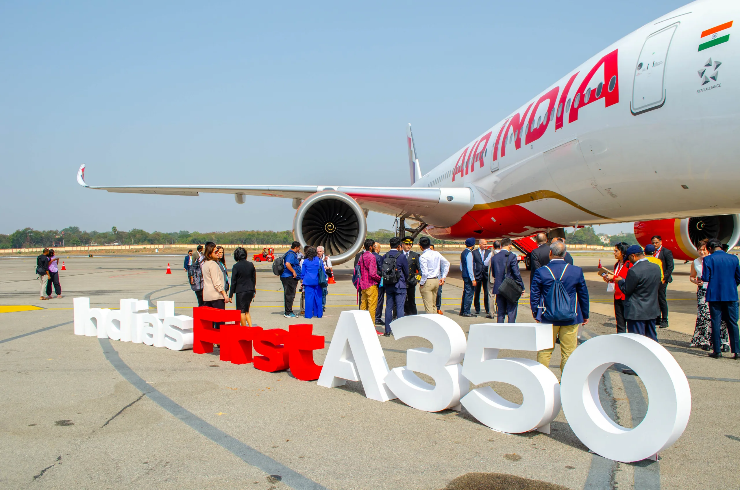 In December 2023, Air India took delivery of its first Airbus A350-900, and unveiled it to the public in January 2024 at Wings India in Hyderabad.