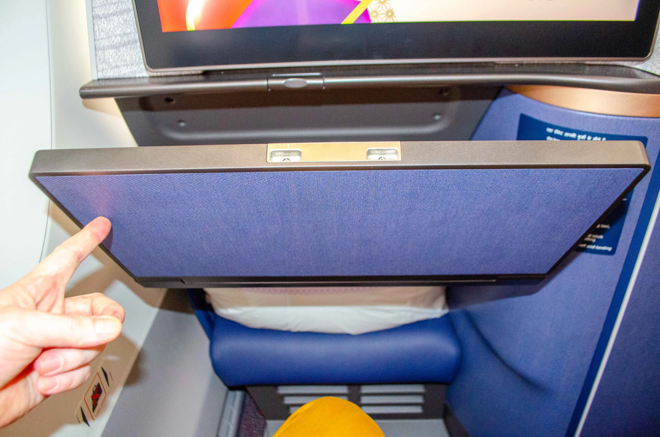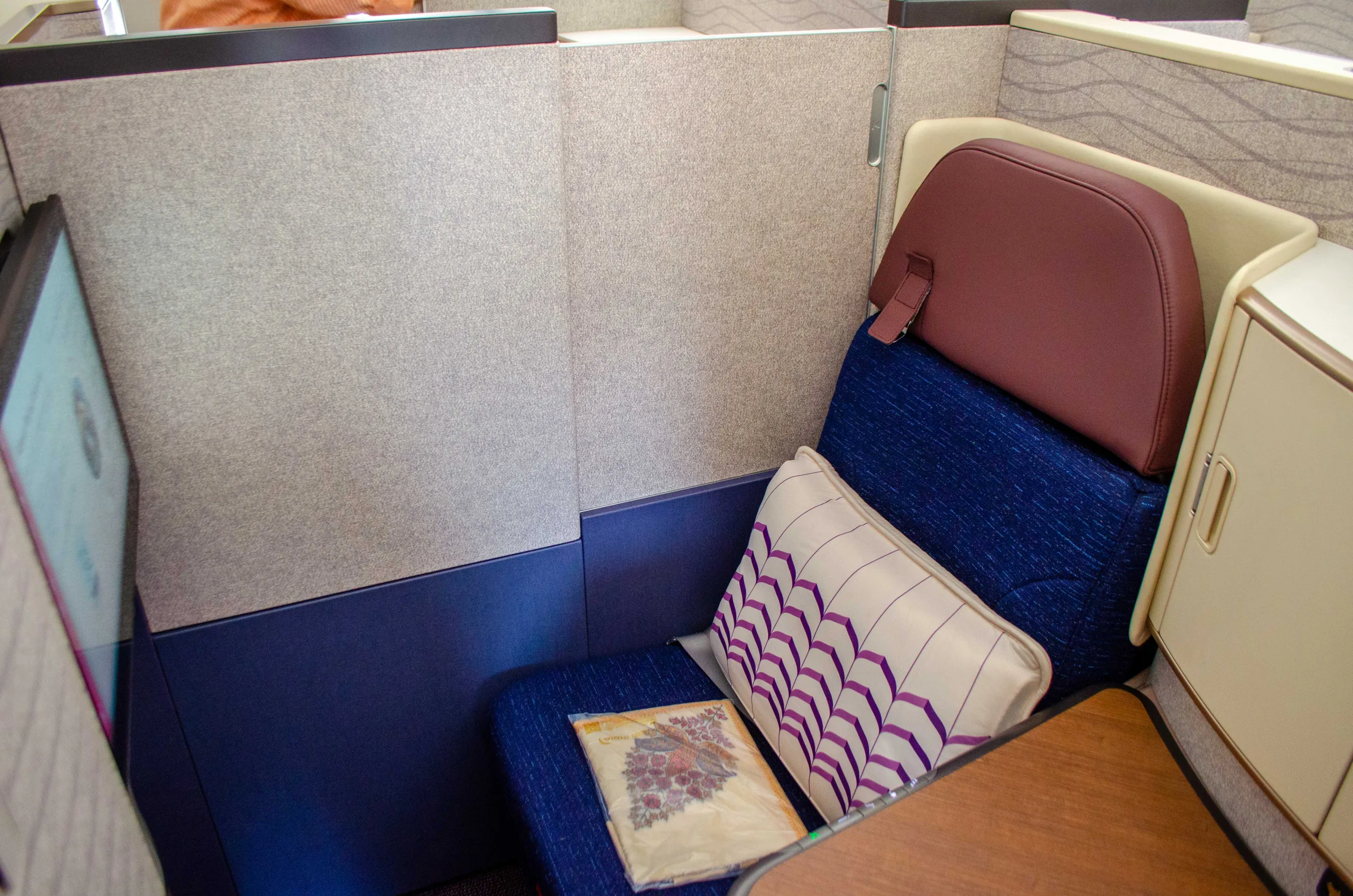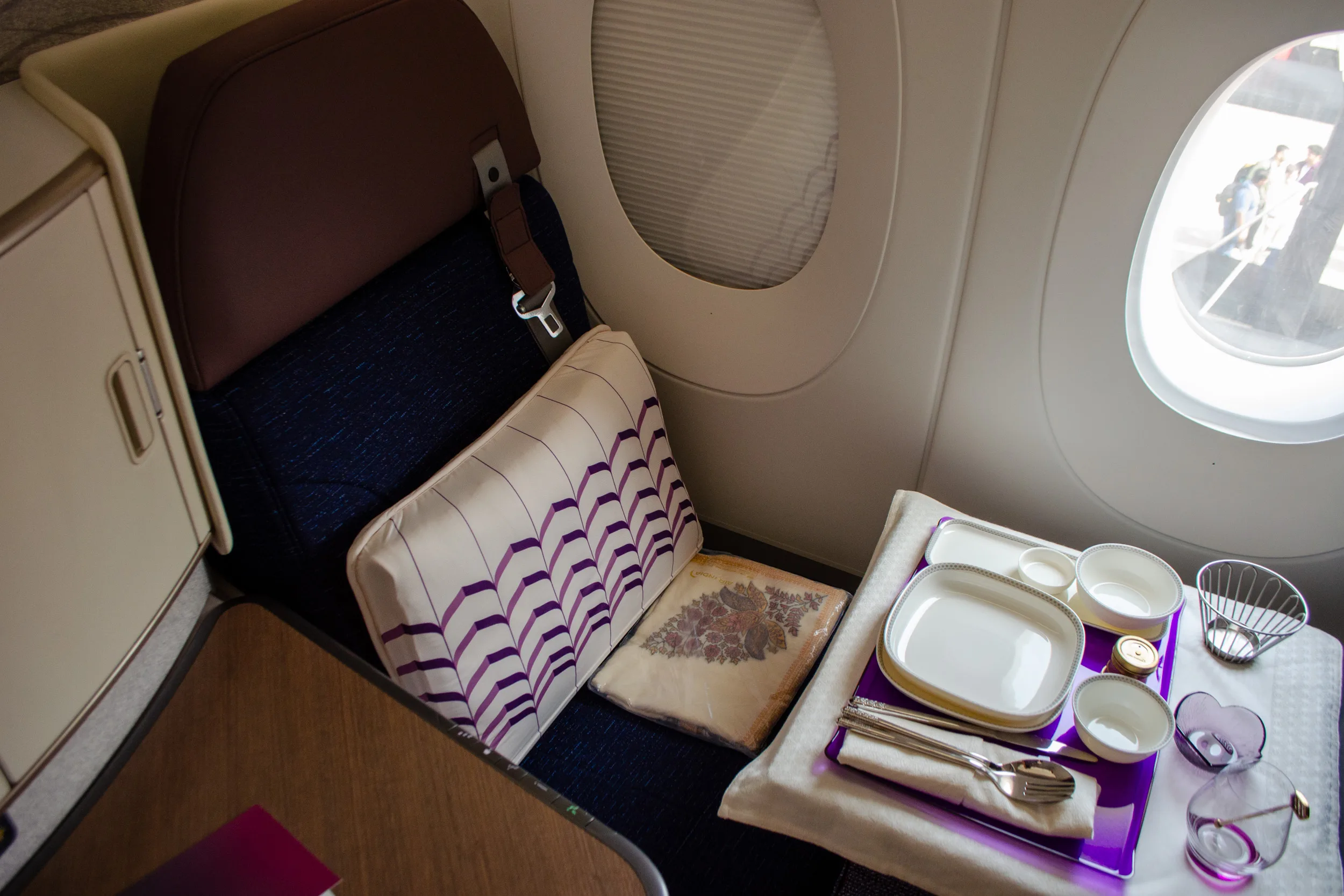 The seat reclines into a fully lie-flat bed. As part of the launch, Air India has also introduced new bedding and amenities, which we’ll feature in a separate article.