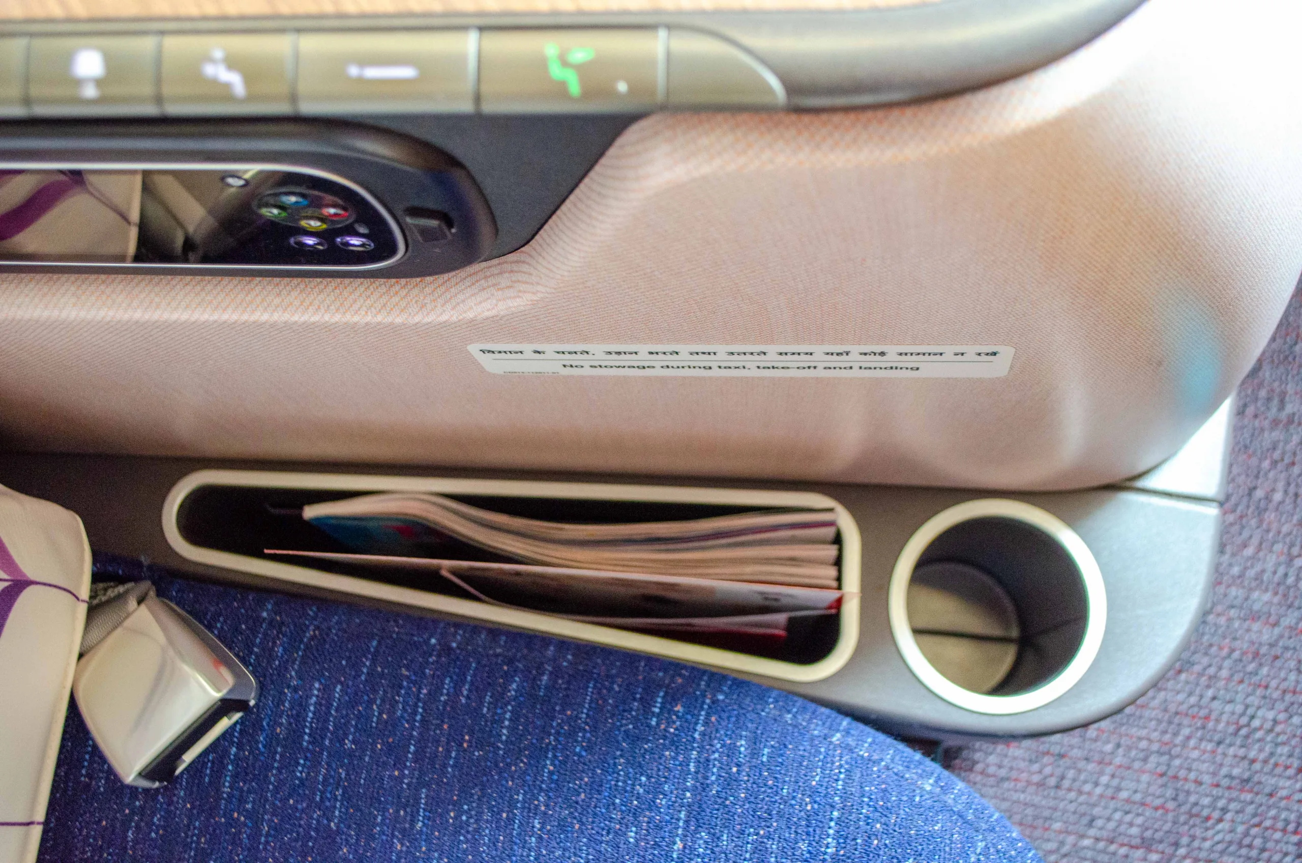 Seat controls are nestled into the side of the surface panel, and just below, you’ll find the entertainment controller.