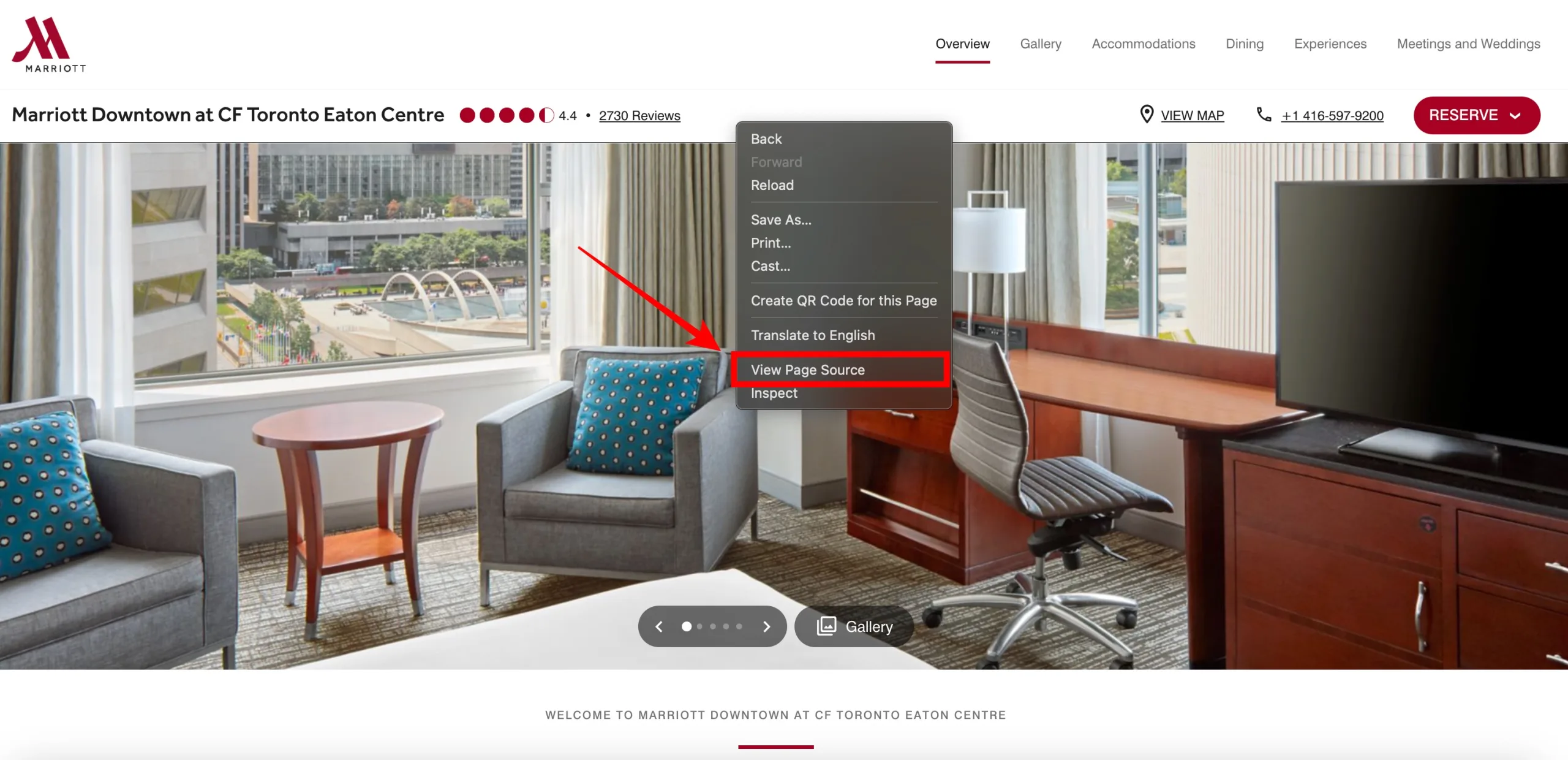 - Search for a hotel of your interest. (Example: Marriott Downtown at CF Toronto Eaton Centre)