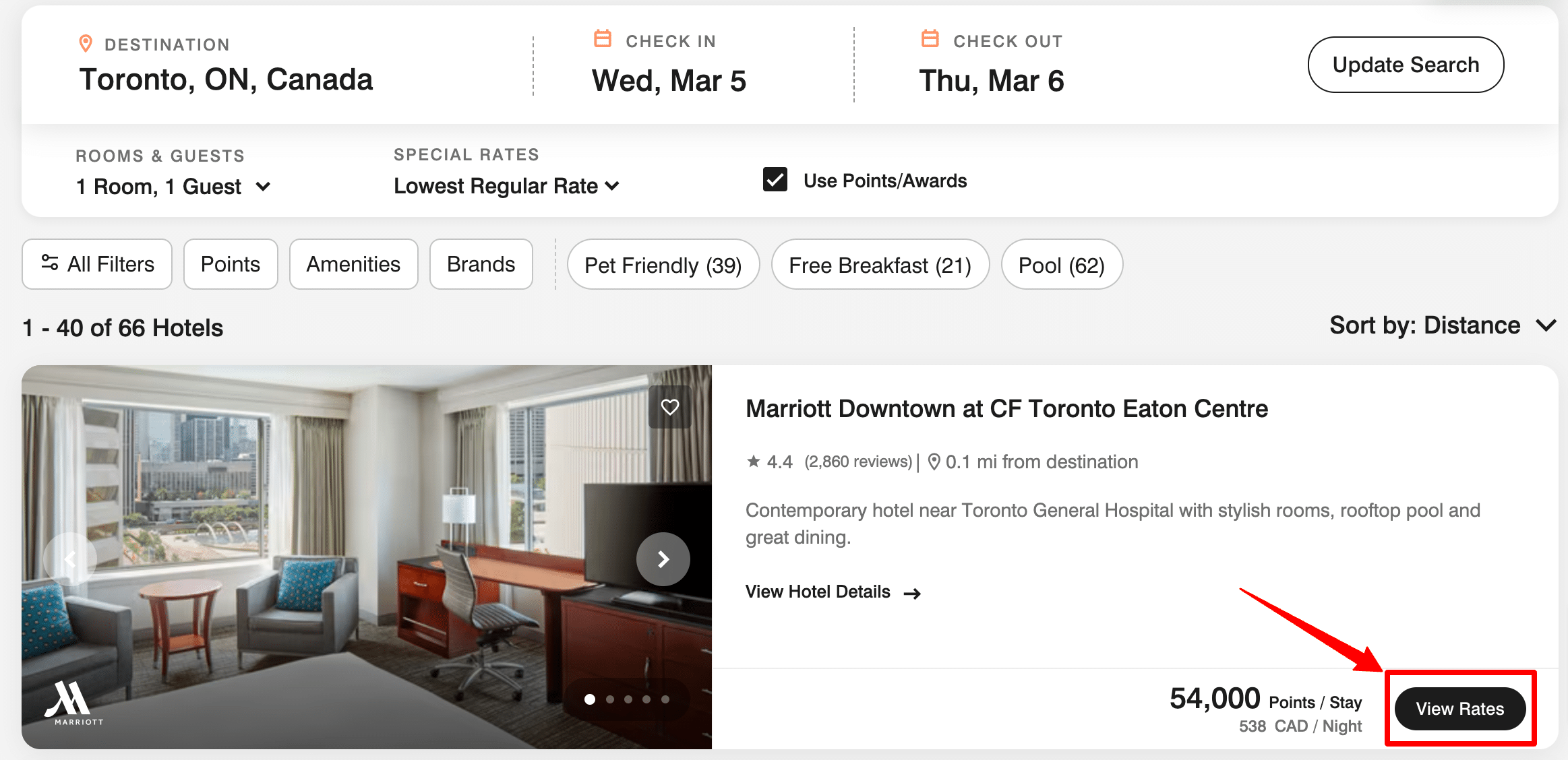 - Click “View Rates” to head over to the hotel page.