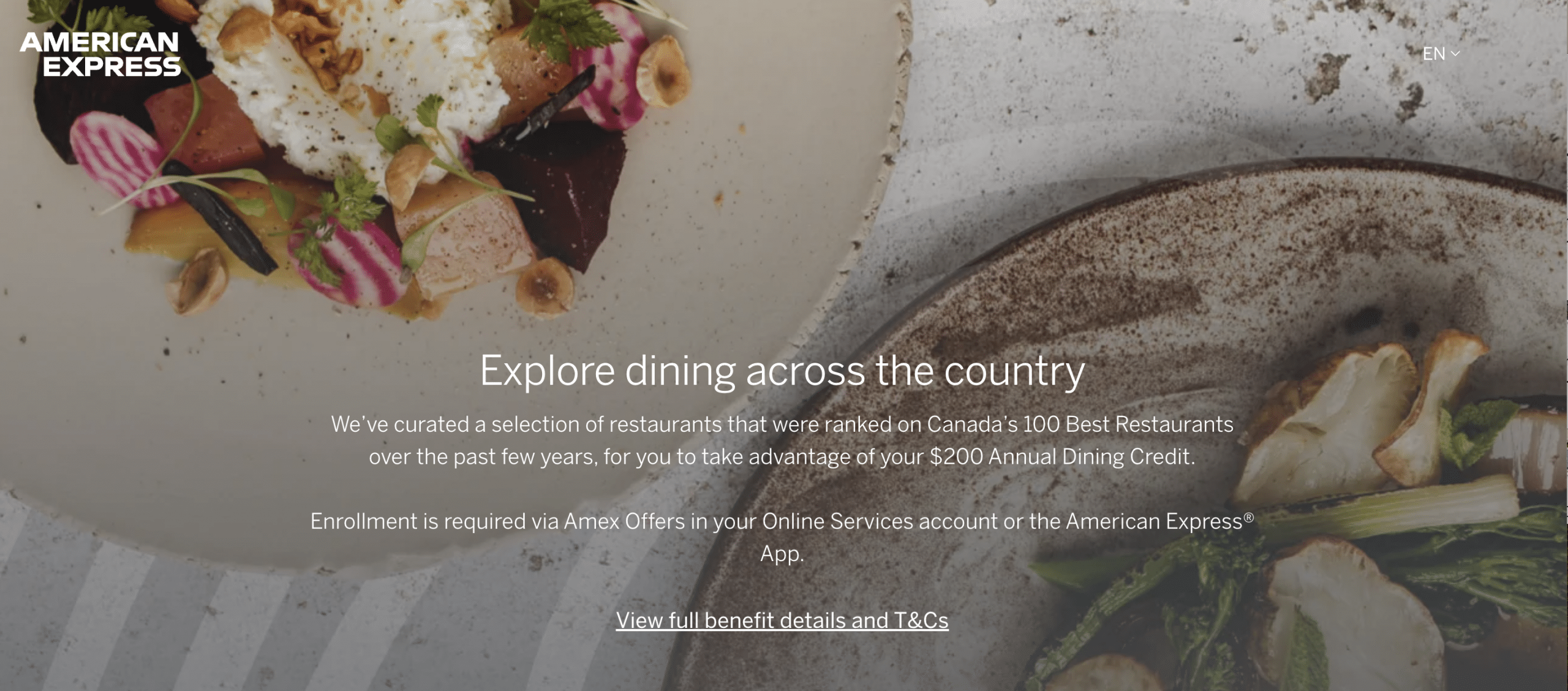 The $200 annual dining credit is exclusively available to be used at a restaurant selected from a list curated by Amex based on Canada’s Top 100 Restaurants.