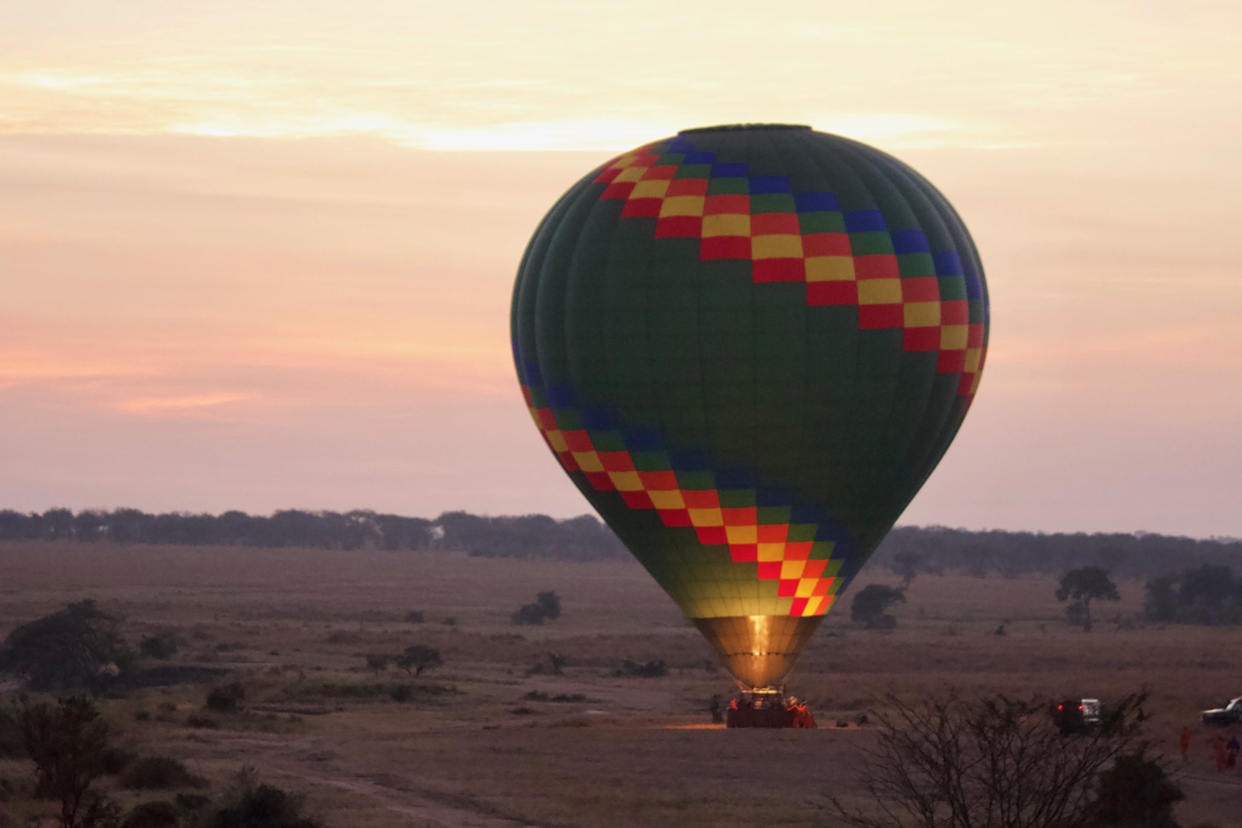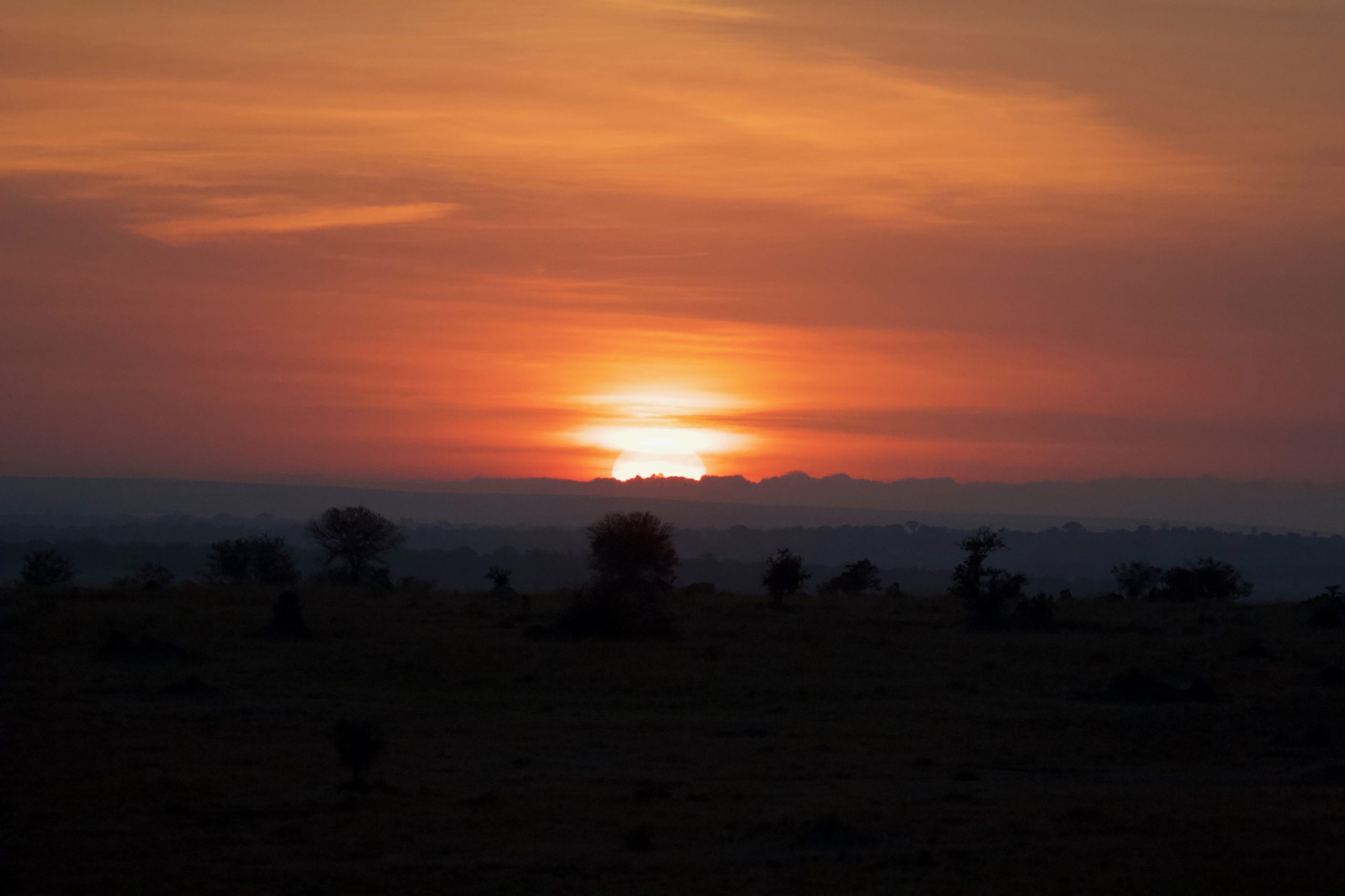 We were driven 30 minutes to the launch site right before daybreak. We got into the balloons and were in the air just in time to catch the beautiful sun rise over the Serengeti. We glided along the Mara River and over the savannah as wildebeest ran beneath us.