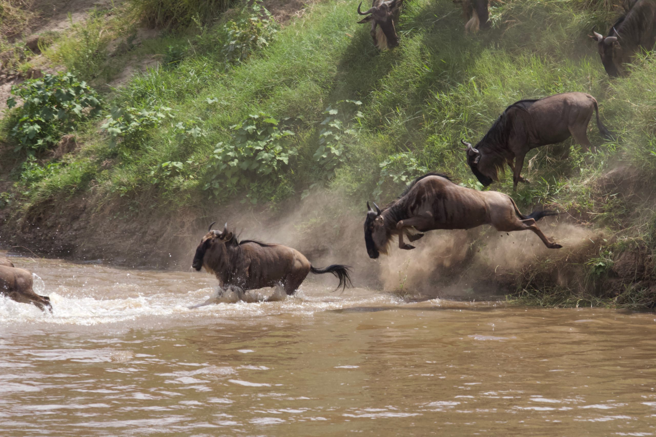 No words can describe the sense of exhilaration that comes upon you as you go from hopeful anticipation to the satisfaction of seeing the the first wildebeest take the plunge, followed by first a few, and then the rest of the herd behind it.