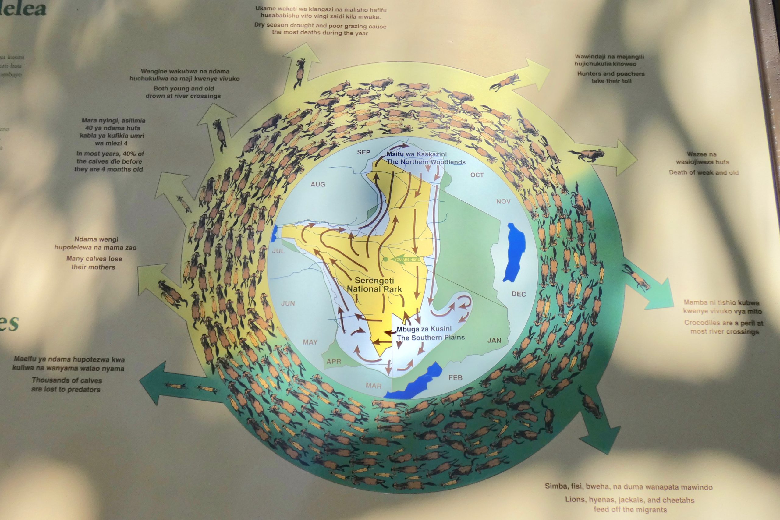 At the end of our game drive, we made a brief stop at the Seronera Visitor Information Centre, a small attraction with illustrations and information about the park, including detailed information about the wildebeest migration. There was also a life-size replica of a termite mound and various animal bones and skulls. Free tours were being offered by students with hopes of becoming safari guides in the future, as these are some of the most well-paid jobs in Tanzania.