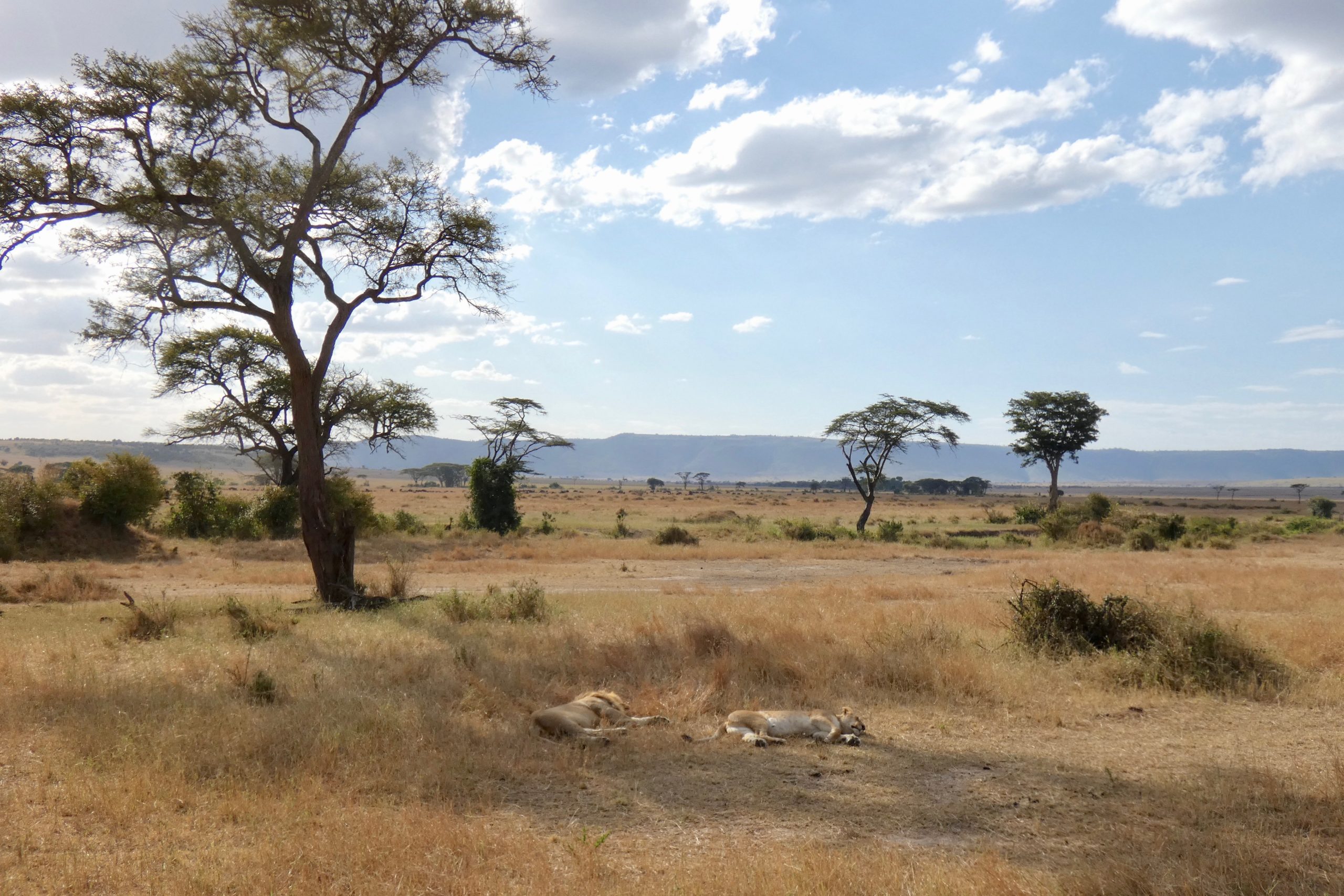 As if that weren’t enough excitement for the day, we also spotted a pair of mating lions on the way back to camp, that were at one point, no more than a few feet from us. We left just as the lioness began showing interest in a herd of wildebeest nearby. Unfortunately, the park was closing for the night, so we had to make it back to camp for curfew.