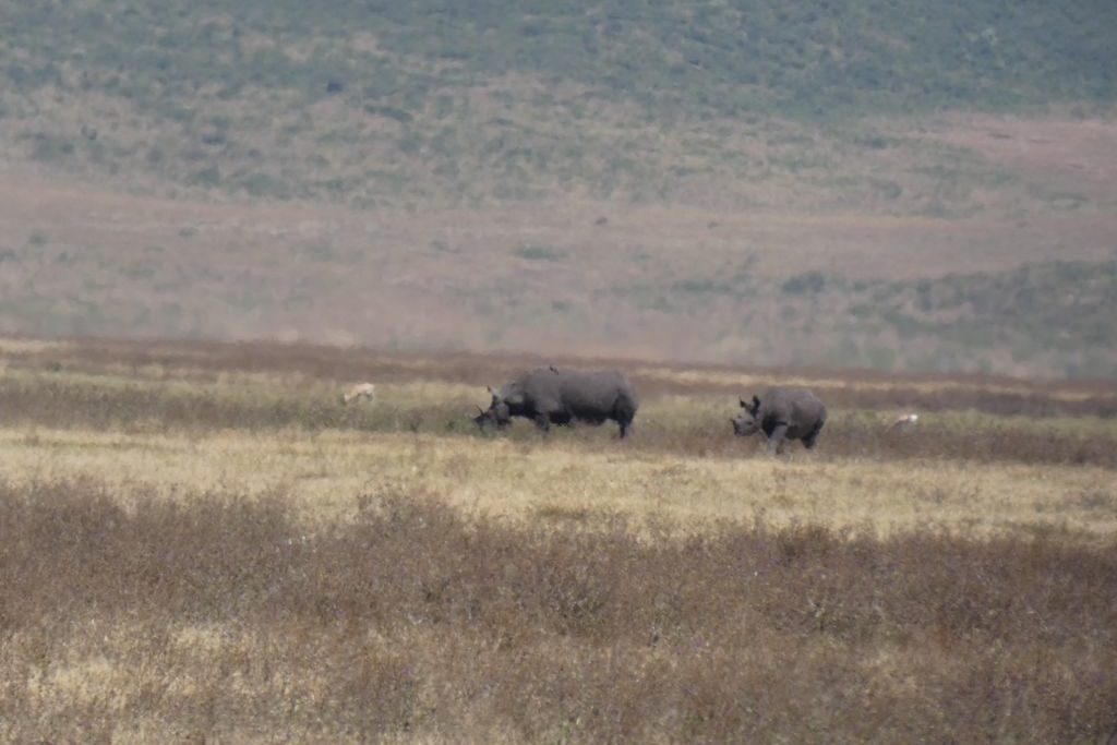 You would think that a black rhinoceros would be easy to spot in the backdrop of the yellow grasslands, but with only 26 of them in the crater, they are actually quite elusive. When we arrived at the site, vehicles were lined up all around the area.