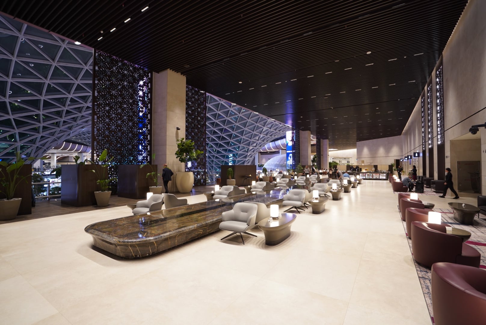 We went for a stroll through the Garden, a new indoor green space inspired by the Jewel at Singapore Changi, and checked out the adjacent new Al Mourjan Business Class Lounge Garden, recently opened to alleviate overcrowding in the old terminal.