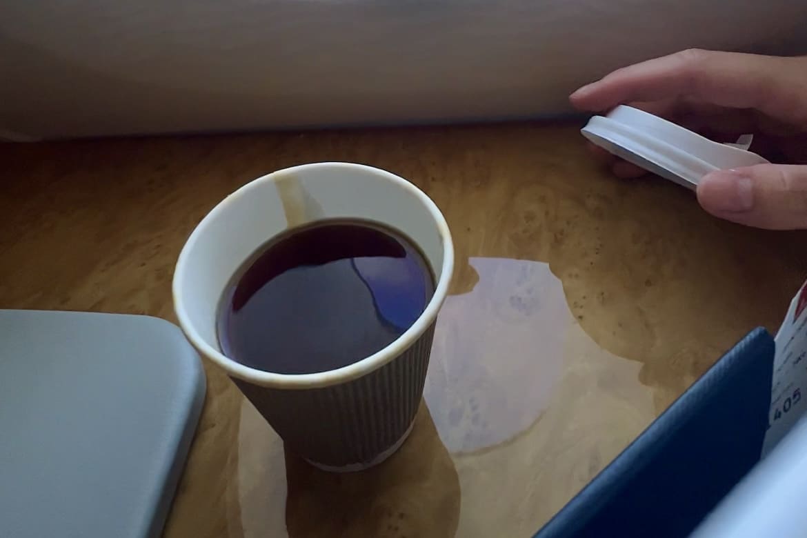 And on a flight like this, where maximizing was the mantra, that was a problem that needed rectifying. With moments left on this flight, I hurriedly asked my cabin crew member if she could pour me a shot in a to-go cup…