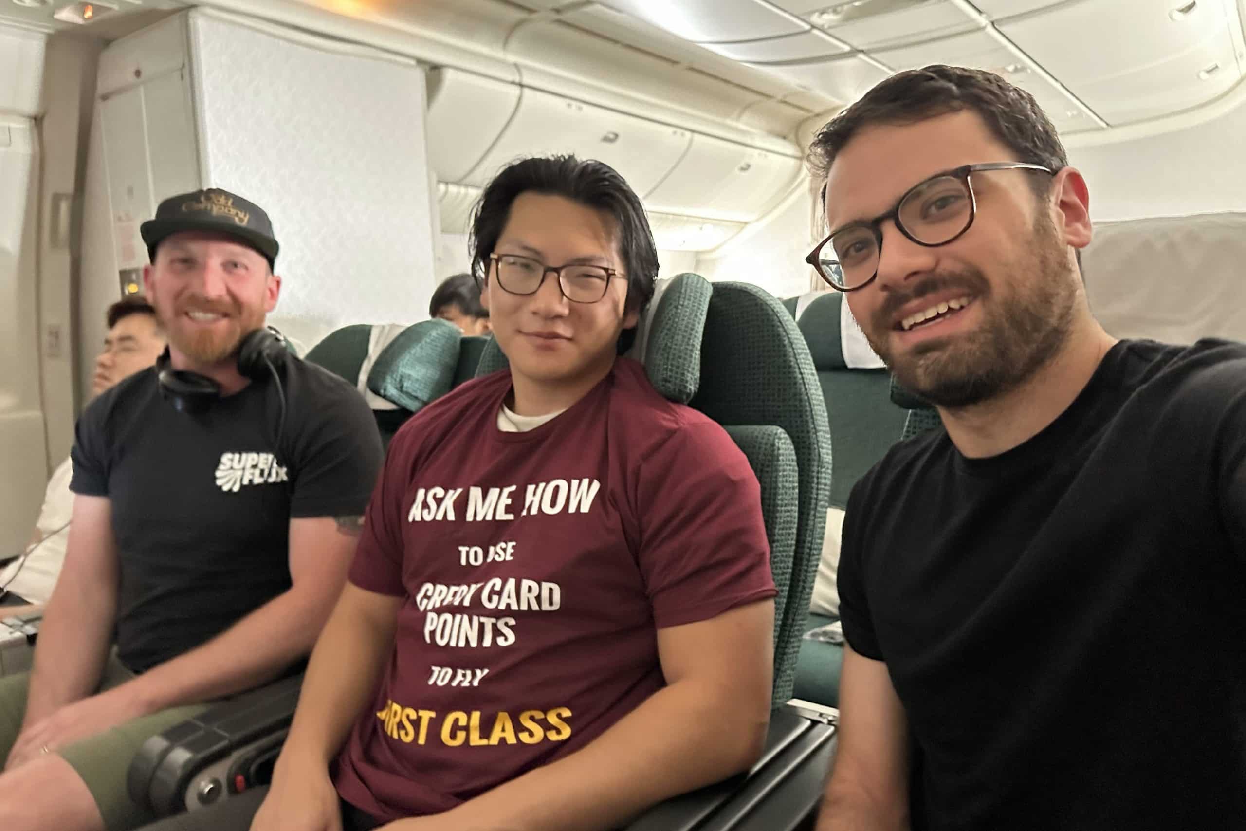 Since Josh, T.J., and I were already booked in business class with no award availability left, we’d need to pull a somewhat advanced maneuver to make this happen: I’d book the First Class ticket in Rohin’s name, and then we’d need to swap boarding passes as we headed down the jet bridge so that I could shoot First Class content while the rest of the guys could head straight to the bar.