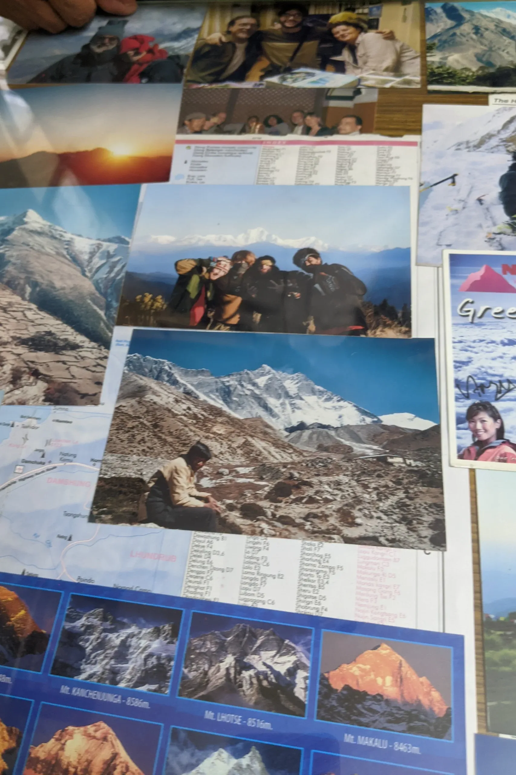 When we returned to his office to settle our bill, meet our guide Ngima, and finalize the details, I was pleased to see that a picture I’d sent to him of our trekking group from 15 years ago was still placed amongst many below the glass cover of his desk.