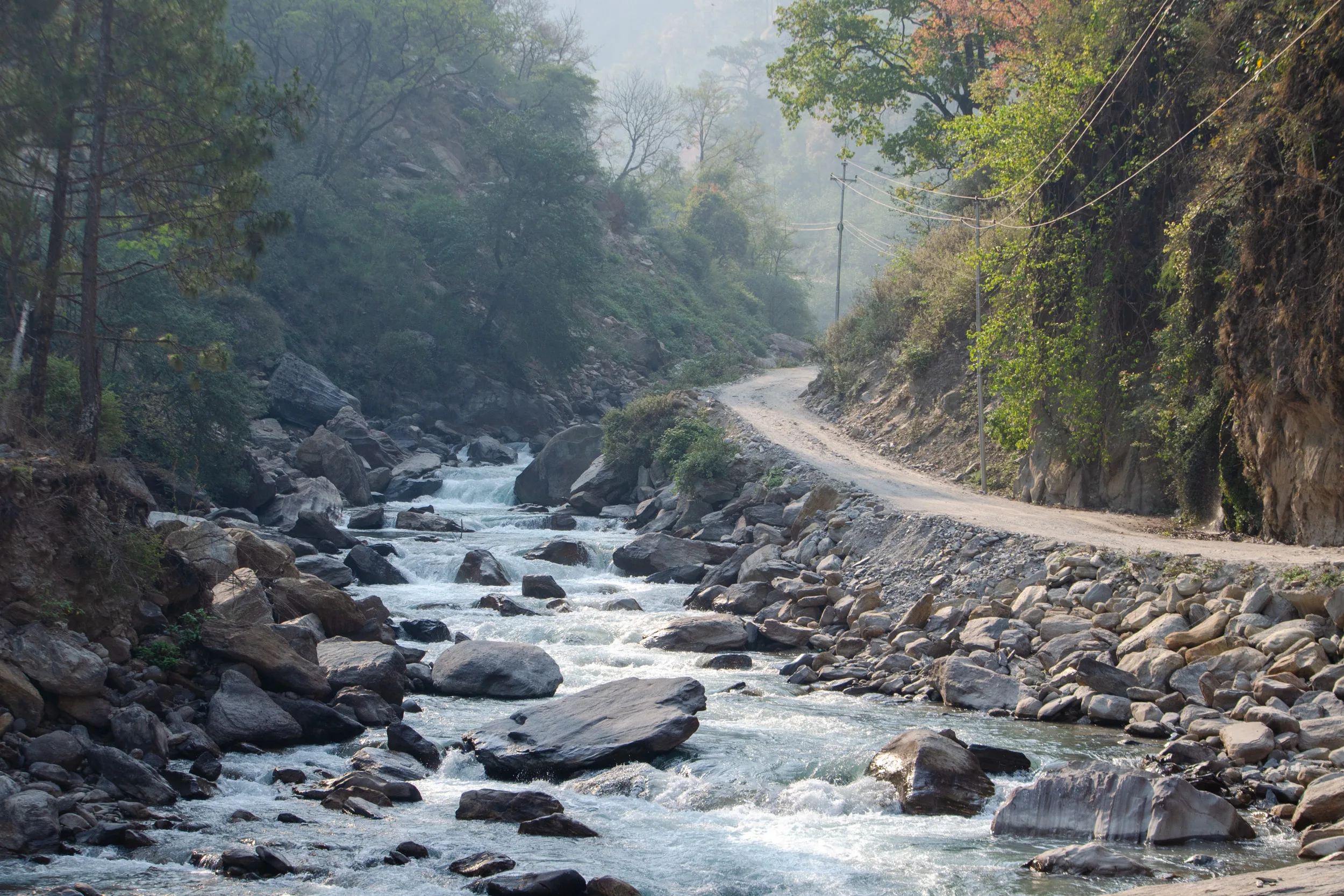 Our jeep navigated through stop-and-go traffic in Kathmandu, and once we’d left the smog clouds behind, we began on a road that snaked around a valley. There happened to be a major construction project happening, and it took us a couple of hours to make it just 20km.