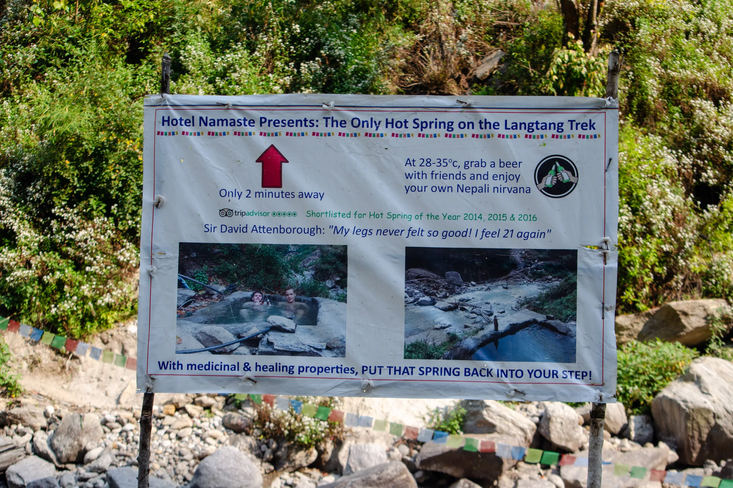 I took note of a sign for a hot spring as we crossed a river bed, which apparently David Attenborough himself had visited during a trek to the area.