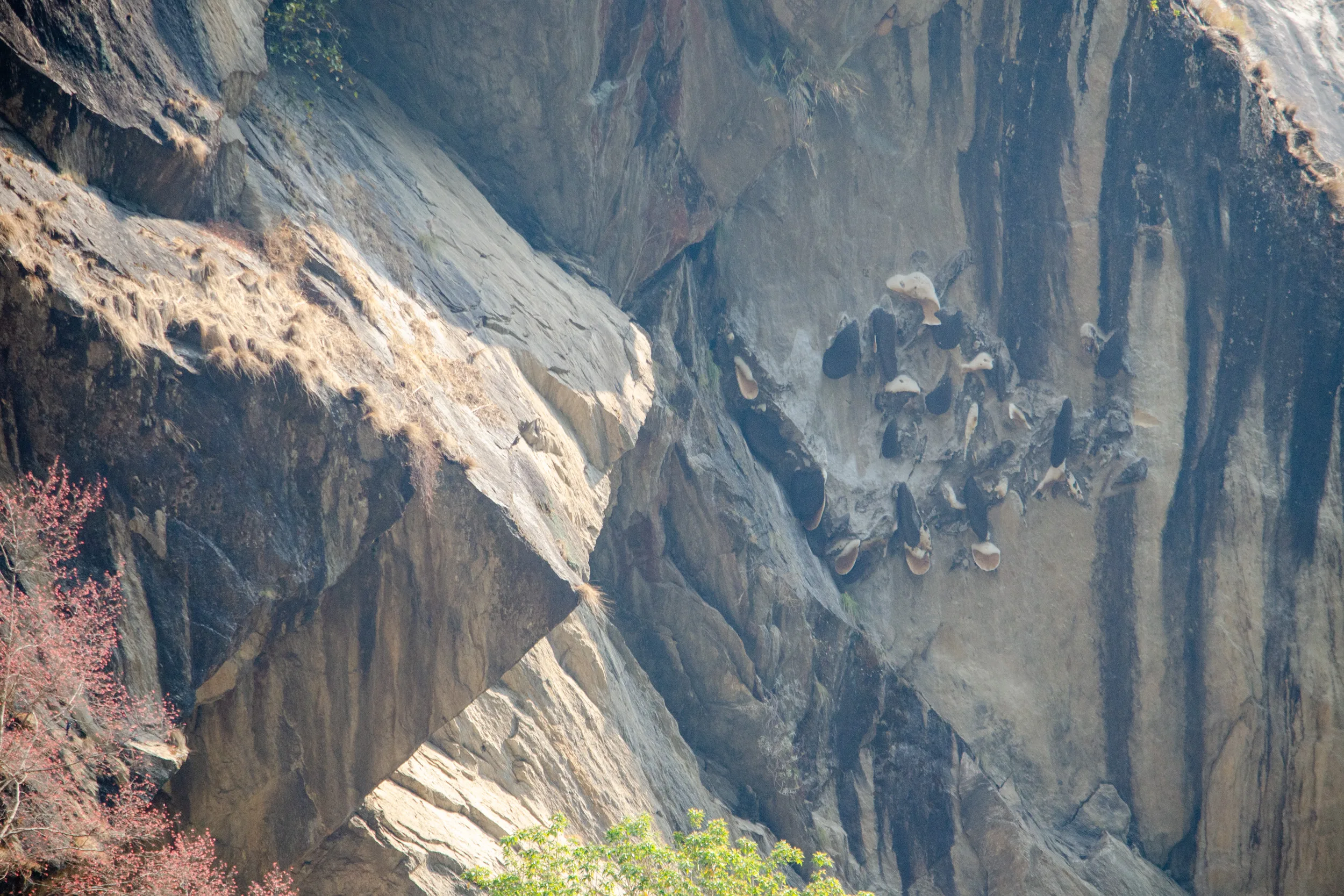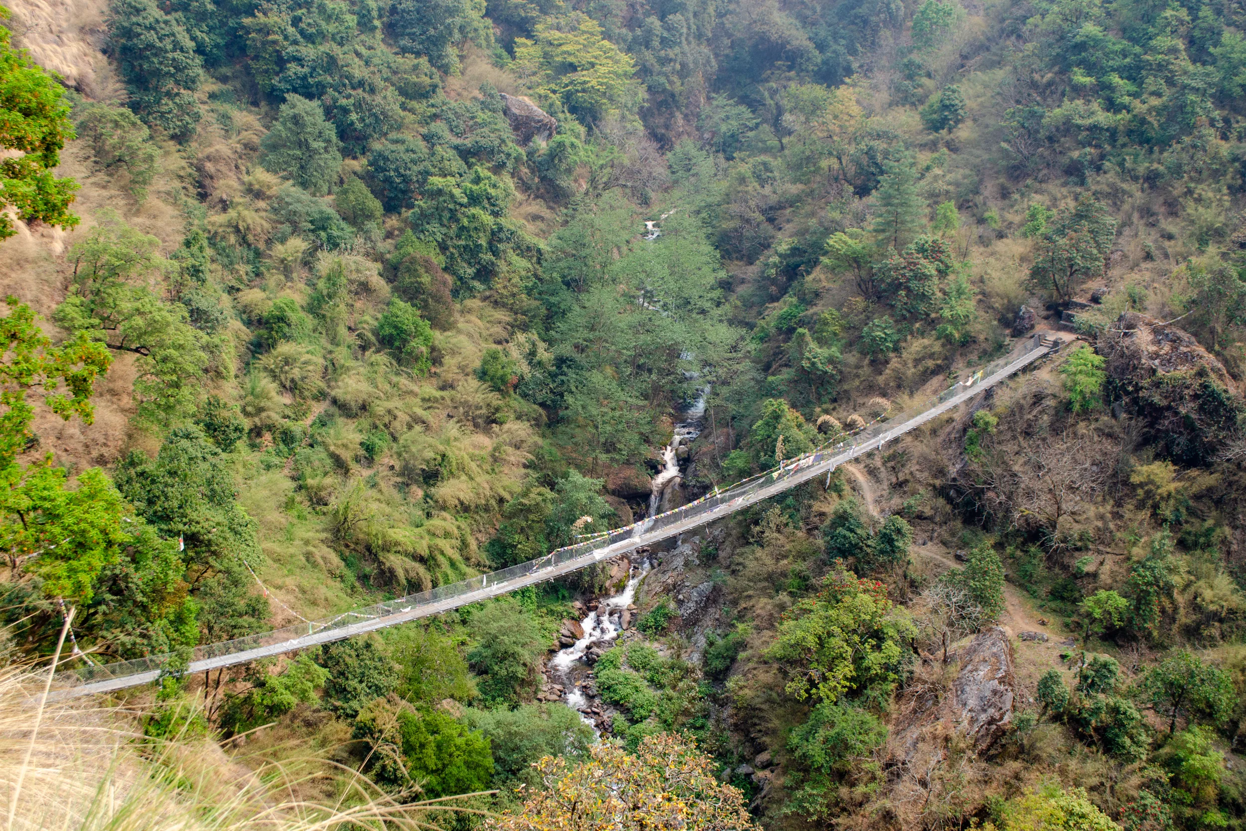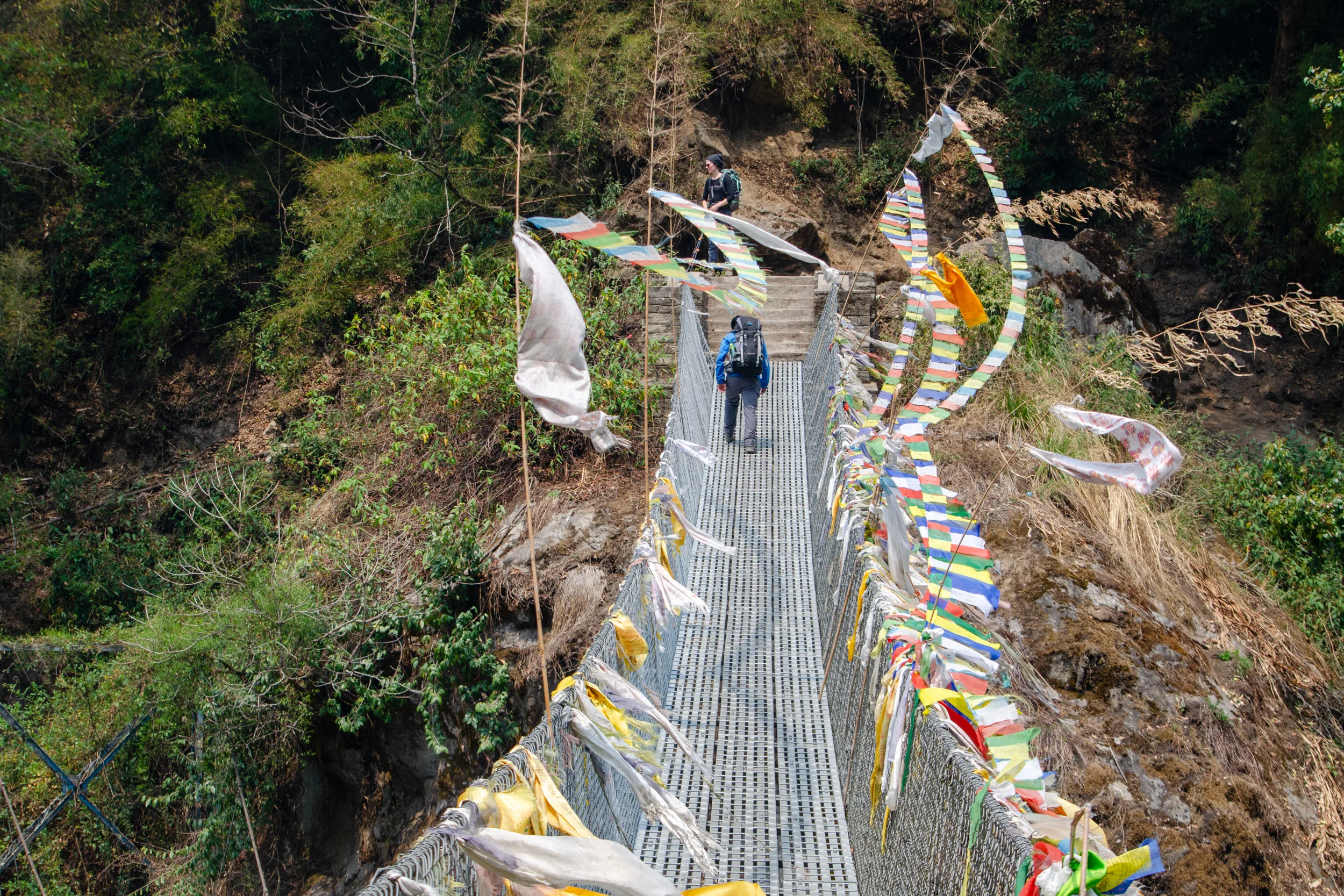 We followed rolling hills until we crossed a long suspension bridge with remarkably low railings, and then made our way up to the village alongside steep cliffsides with no guardrails.