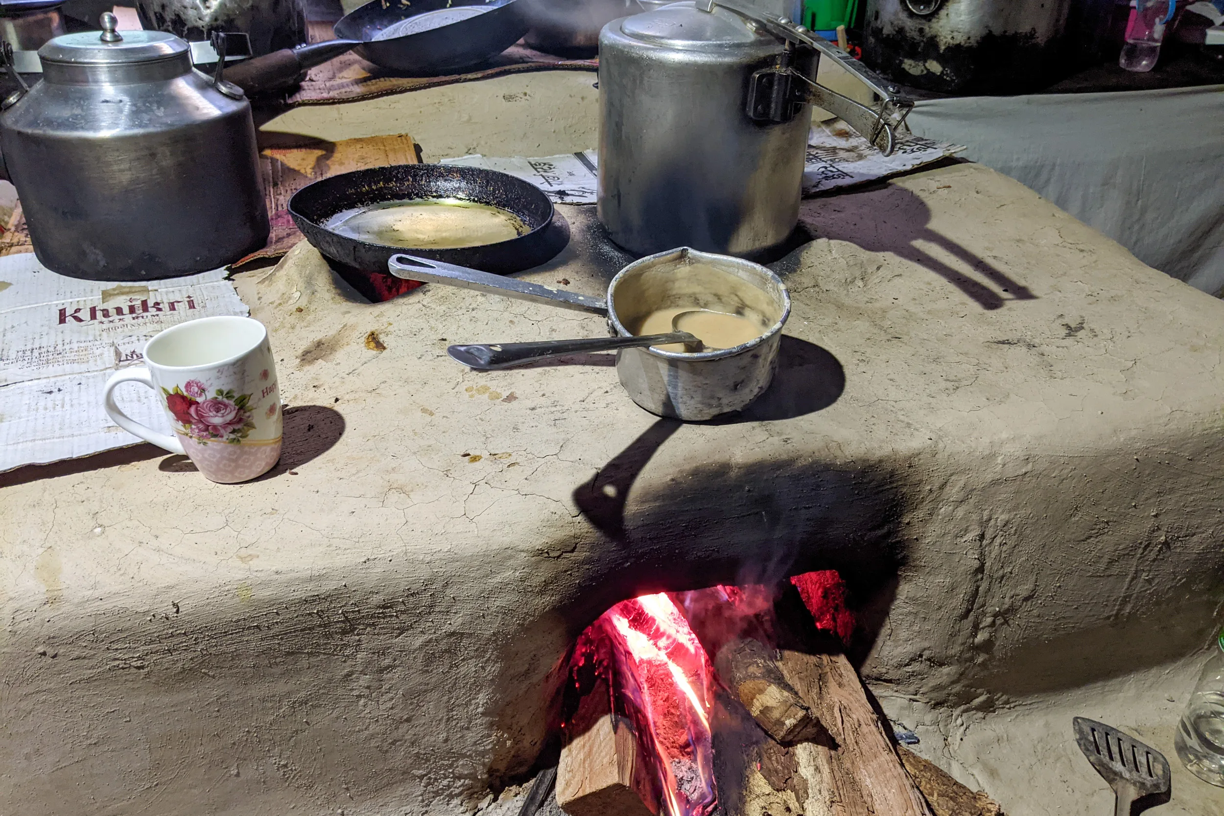In the morning, I enjoyed a cup of chai while warming up in front of the stove in the guesthouse’s kitchen. In between sips, the pressure cooker on the stove, which was cooking dal, let out loud blasts of steam.