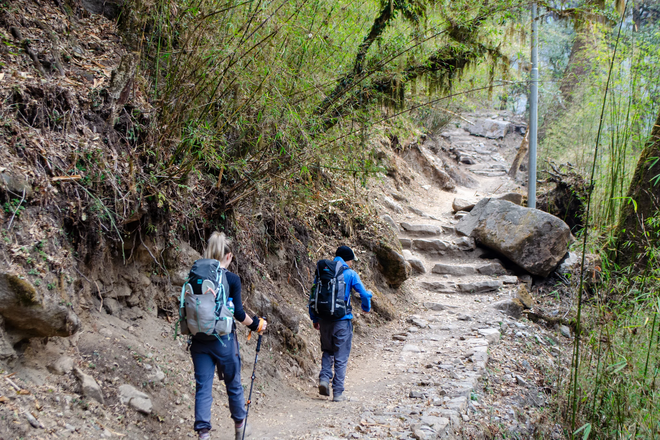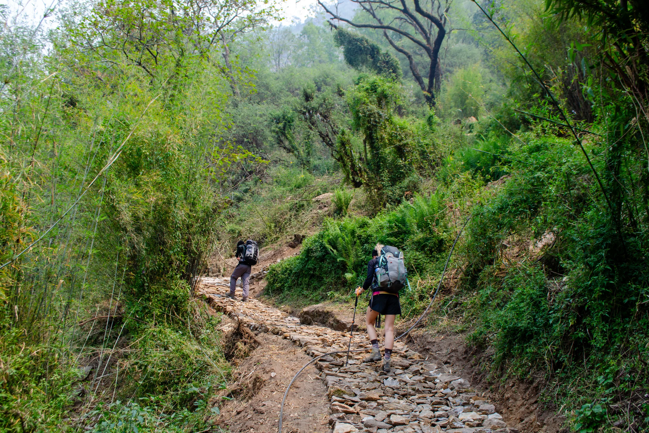 As we made our way onto a trail, we trekked through bamboo jungles and rhododendron forests. In April, we were fortunate to have flowers blooming all around us, which served as a good distraction from the physical exertion and the hot temperatures.