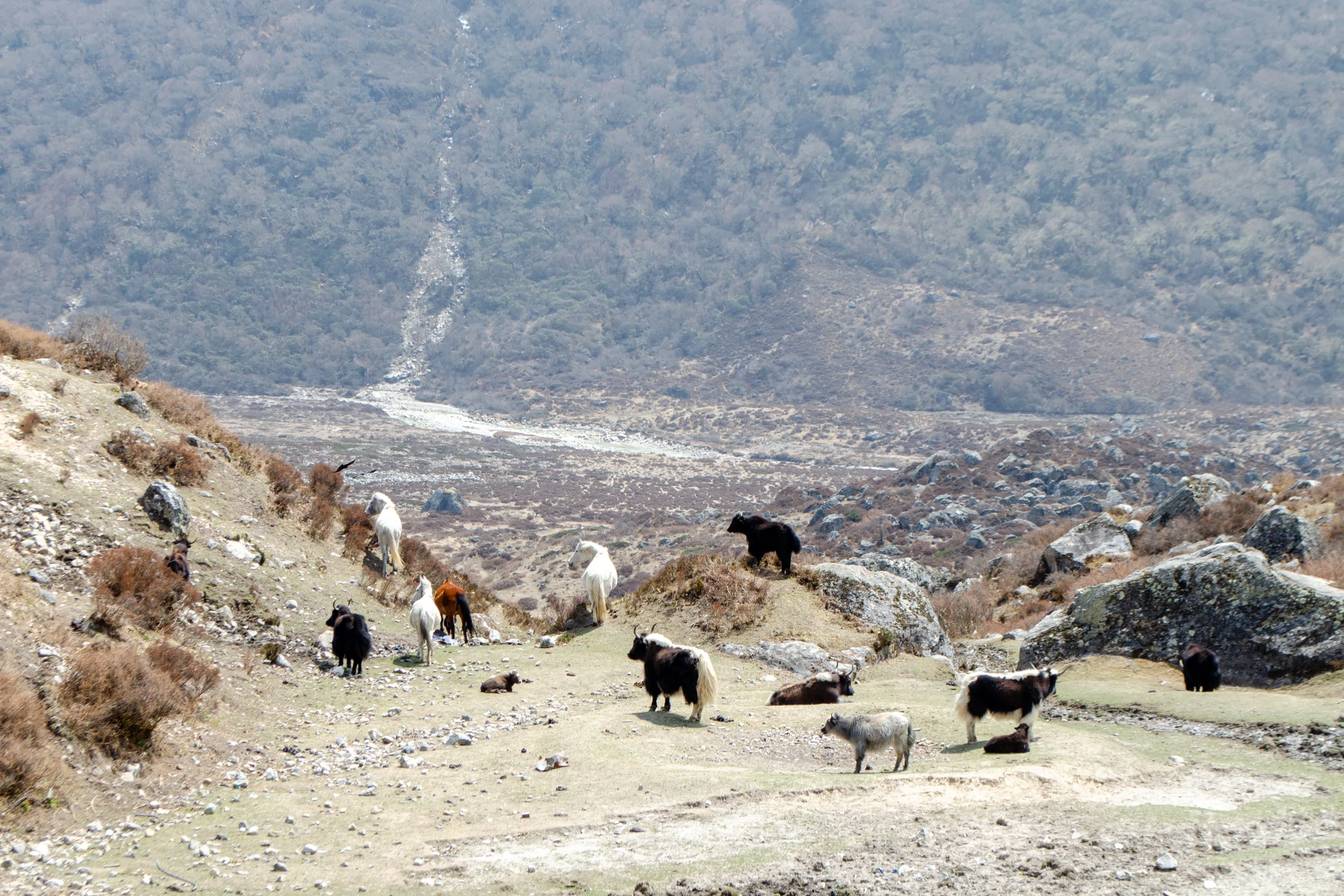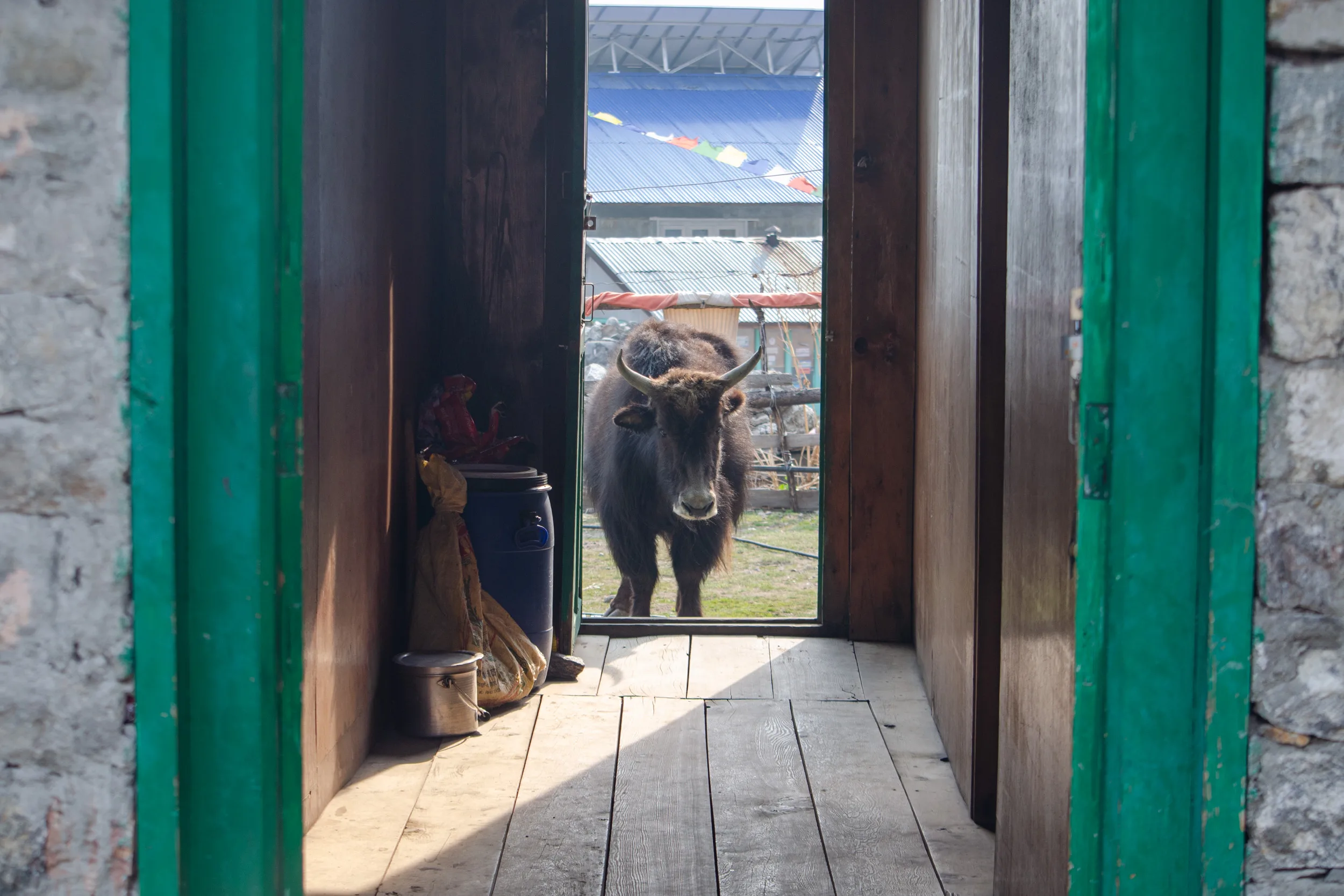 Ngima and I had a good laugh when a yak stood at the entrance to the dining room, seemingly hungry for an order of momos or two. The fire in the dining room was fuelled with yak dung, and Ngima entertained my numerous questions about these glorious, burly creatures.