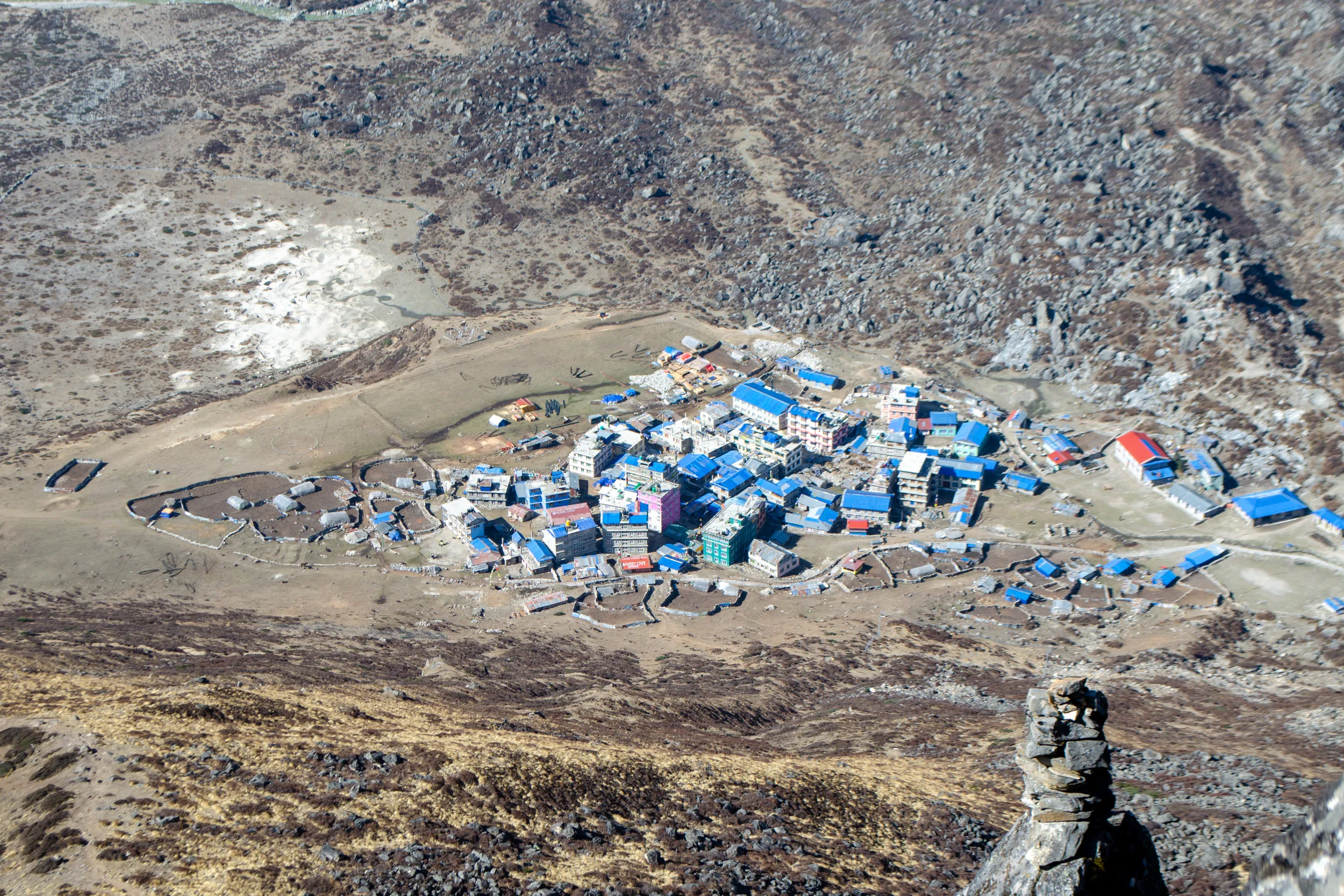 Ngima pointed out all of the peaks and their altitudes. In the distance, we could clearly see Shishapangma in Tibet, which towers at 8,027 metres, and closer to us were Langtang Lirung (7,234 metres), Yala Peak (5,500 metres), and Tsangbu Ri (6,781 metres).