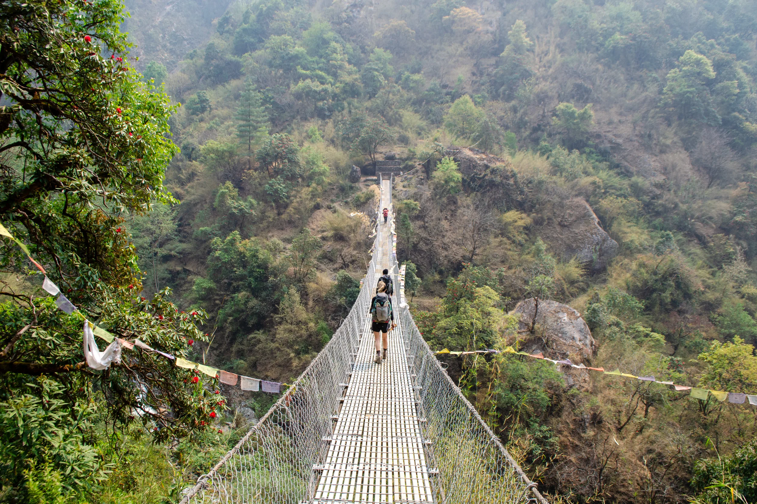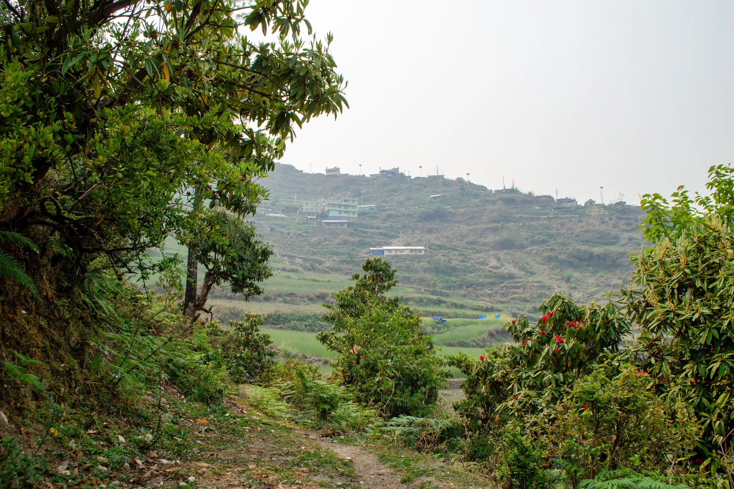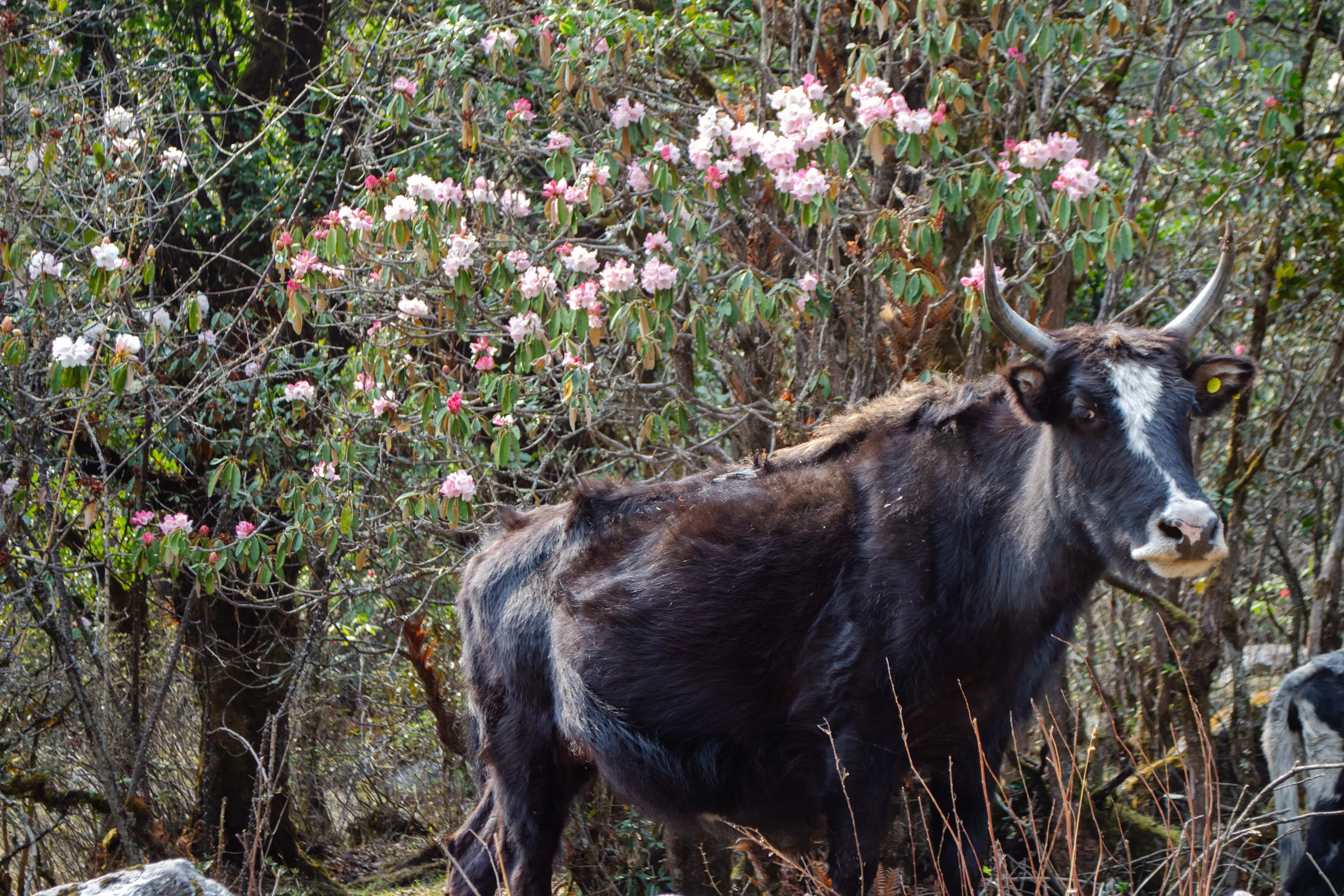 Ngima and Ashley must have heard some language that was about as colourful as the rhododendron blooms we passed through, but we kept each other in good spirits until we reached our destination village.