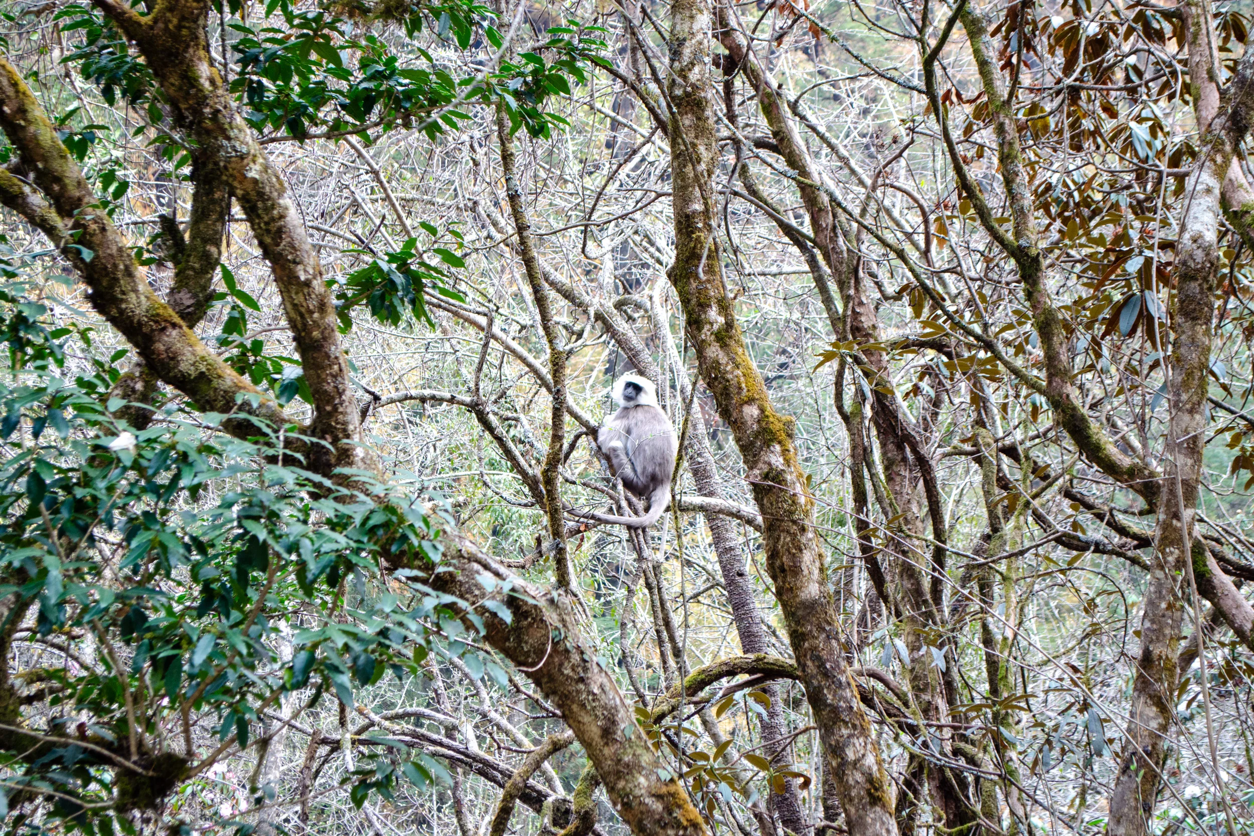 The first 4km followed along a road beside the Langtang Khola (river), and we were accompanied by a herd of goats for part of this leg. It was peaceful to hear rushing water and see the river’s beautiful blue hue, and we also caught our first glimpse of a monkey swinging from the trees.