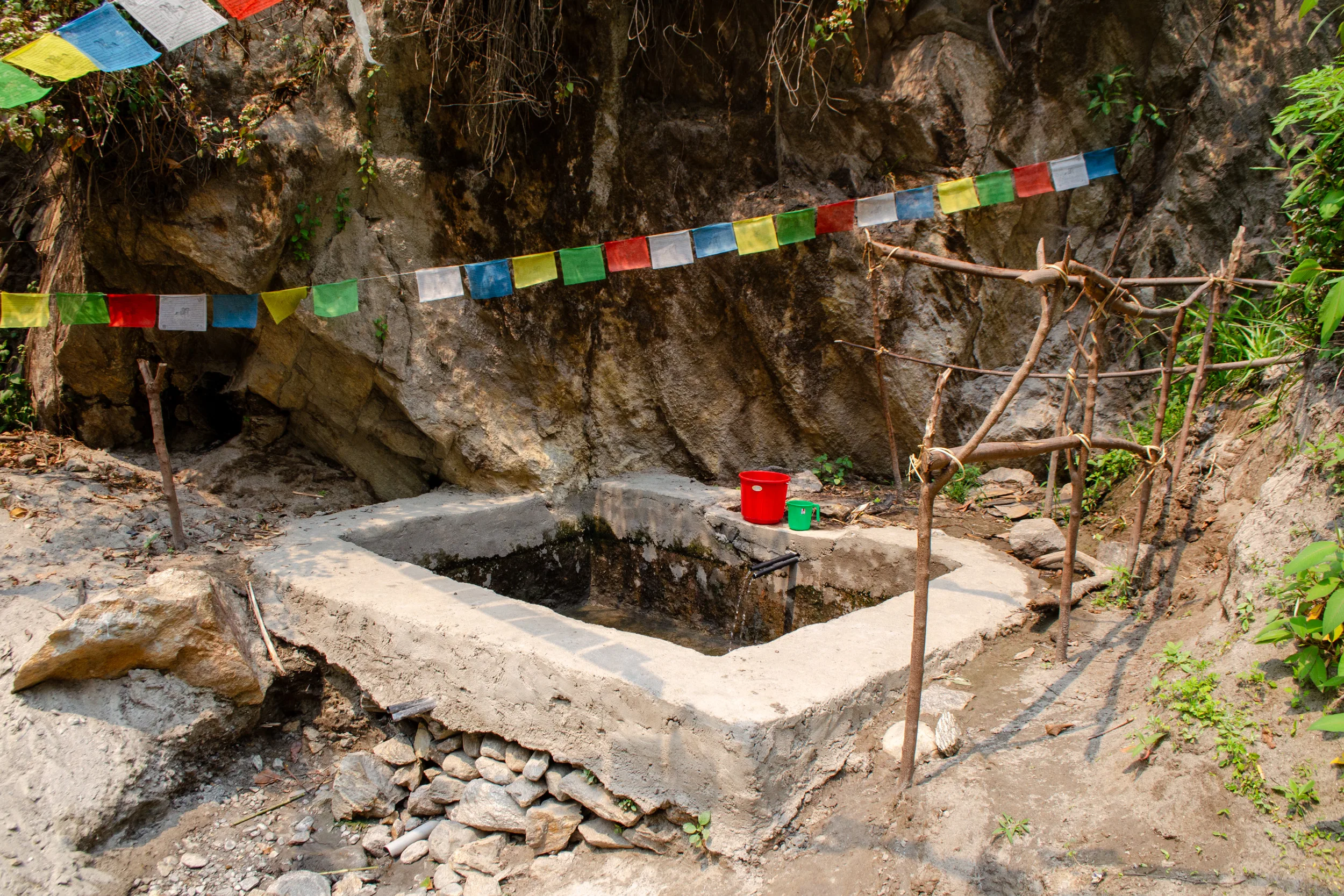 While it was a bit disappointing, I decided to give the pool a clean and then filled it up for the next group of would-be bathing enthusiasts. The family at the nearby guesthouse where we had lunch gave me a bucket, which I used to pour hot springs water over my aching muscles until I’d had my fill.
