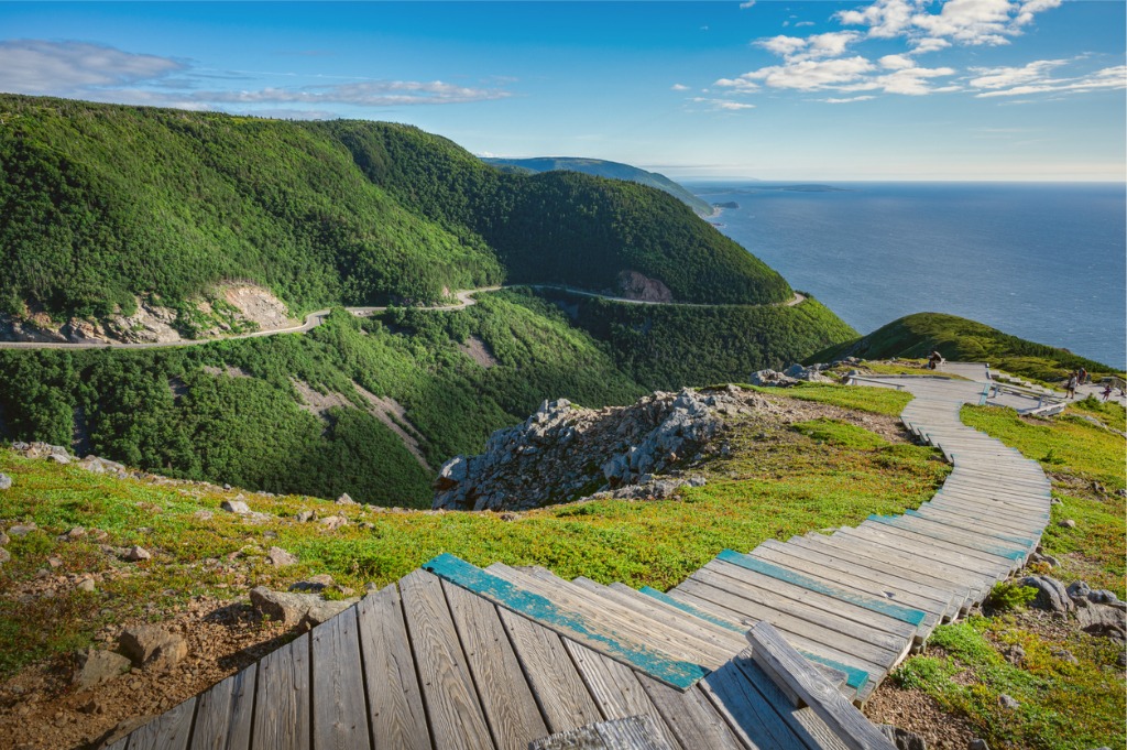Cape Breton Island enchants visitors with its breathtaking coastal views, best experienced along the scenic Cabot Trail. Cape Breton Highlands National Park offers beaches, hiking trails, wildlife spotting and spectacular views.