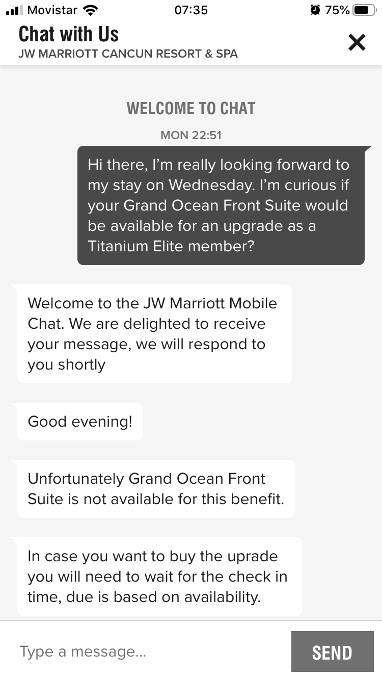 One has to wonder whether simply asking nicely for a suite upgrade might incentivize your hotel to “make an exception”, given that most elite guests probably aren’t being quite so diligent about hitting up the chat?