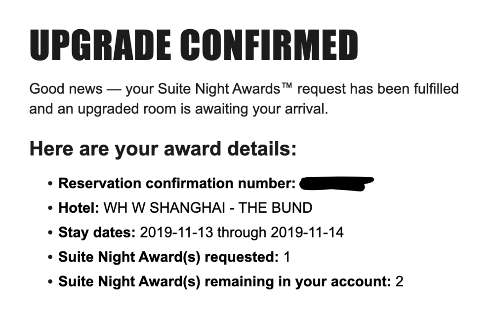 As with all my previous uses of SNAs, this one cleared five days before my stay, and the only chatting I needed to do was to confirm whether the suite would be ready for my 10:30am early arrival.