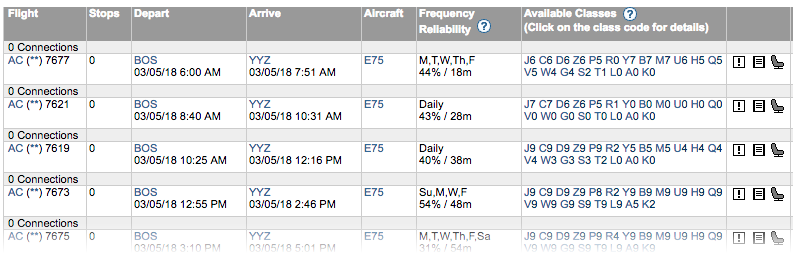 I look on ExpertFlyer again for alternatives, but since the two early morning flights out of Boston have both gone pear-shaped, all the other flights – including AC7619, the 10:25am Toronto flight I was originally rebooked on – are now full. I regret everything.
