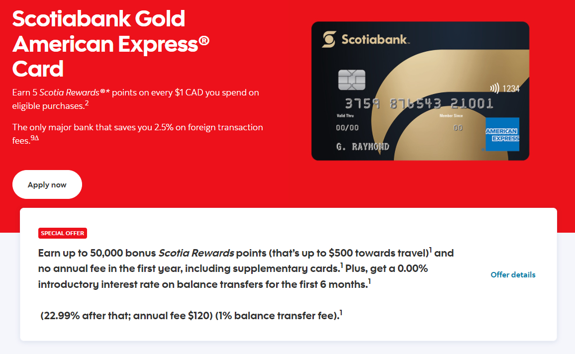 Take a look at the Scotiabank Gold American Express Card offer above. $500 worth of travel, no foreign exchange fees, 0% balance transfer, and the first year is free? That’s an incredible amount of value that a cardholder can derive out of a credit card without paying anything upfront.