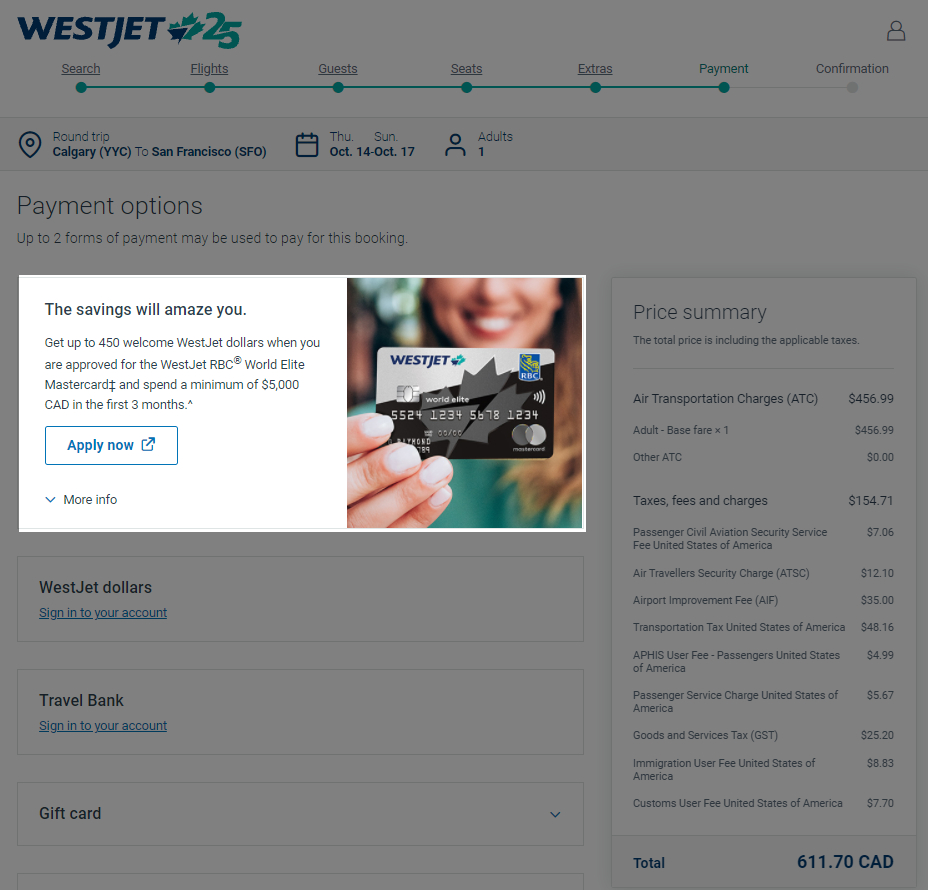 Even when you are about to purchase a WestJet fare and you are presented with an “in-path offer” to sign up for a credit card, there’s an ASC associated with that as well.