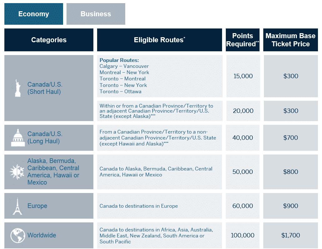 Other travel rewards have a variable value. Some banks, like RBC, CIBC, and American Express, offer a flight rewards chart, which uses a set amount of points for tickets up to a certain cash price. Often, this is better value than redeeming your points for statement credit and buying airfare with cash outright.