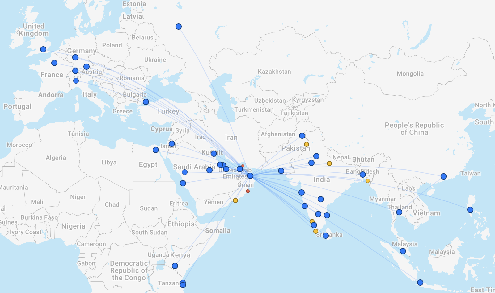 Let’s take a glance through Oman Air’s route map.