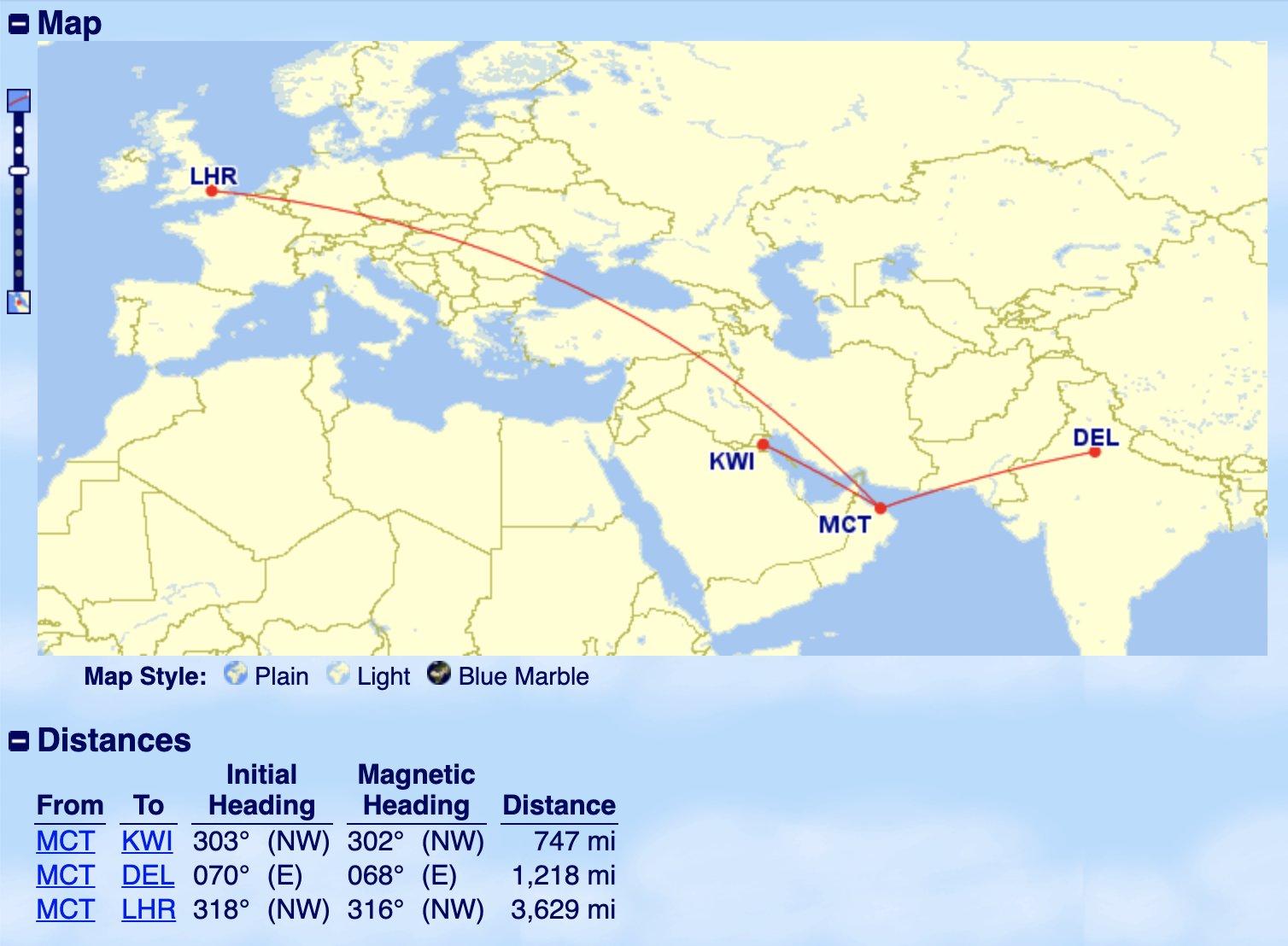 If you were to combine a Oman Air flight with another flight departing from North America, your trip would be governed by either the North America–Atlantic or North America–Pacific charts: