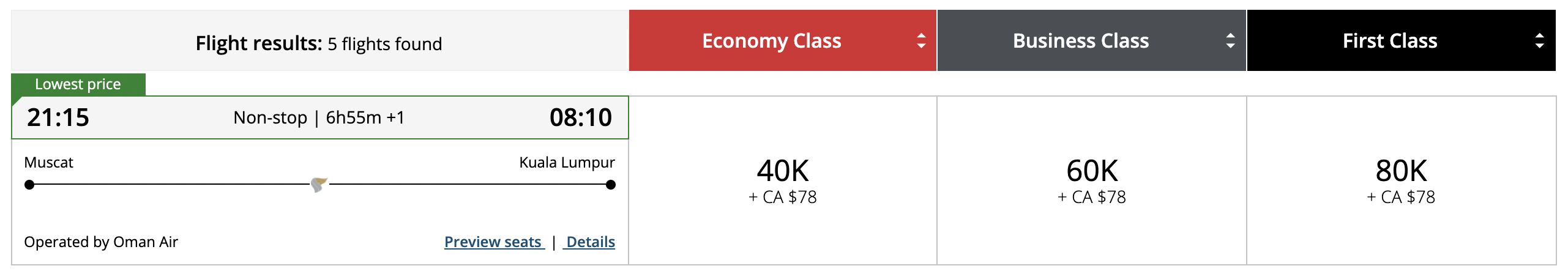In line with all other partner redemptions, Aeroplan redemptions on Oman Air follows the following set of principles: