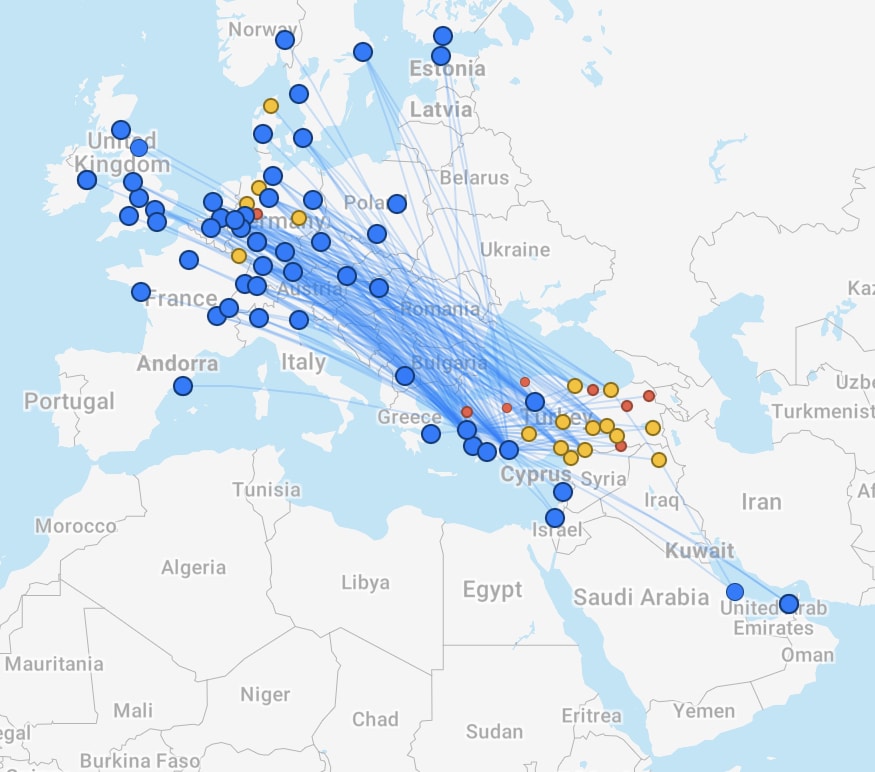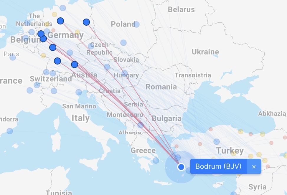 Let’s take a look at the SunExpress route network using FlightConnections.