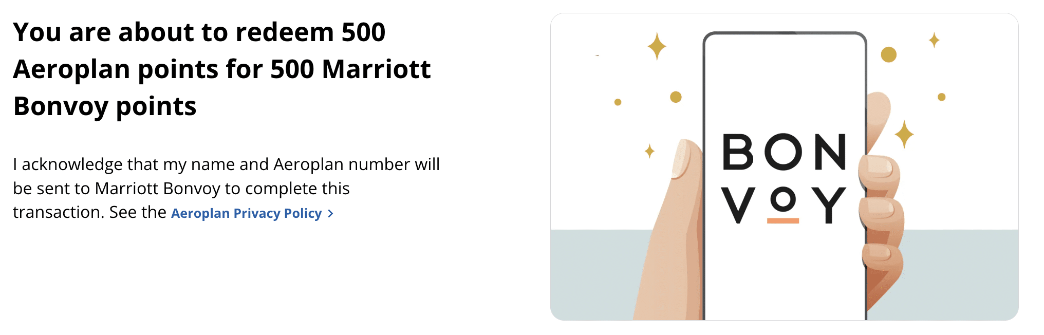 If you’d like to convert Aeroplan points into Marriott Bonvoy points, you’ll need to head to the dedicated landing page, sign in to your Aeroplan account, and provide your Marriott Bonvoy number.