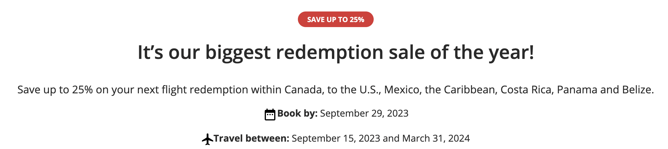 Aeroplan has launched its latest promotion, with which you can save up to 25% on Air Canada redemptions in all classes of service within North America. The offer runs from September 15, 2023, to September 29, 2023, for travel through to March 31, 2024.