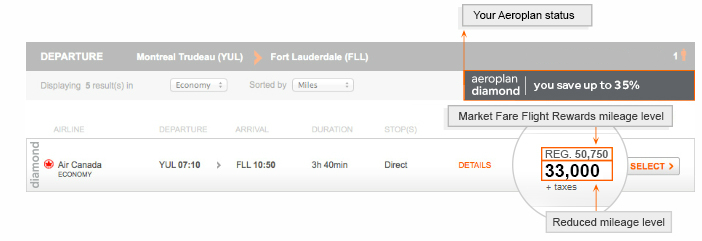 Market Fare Flight Reward discounts, available to all Aeroplan status members.