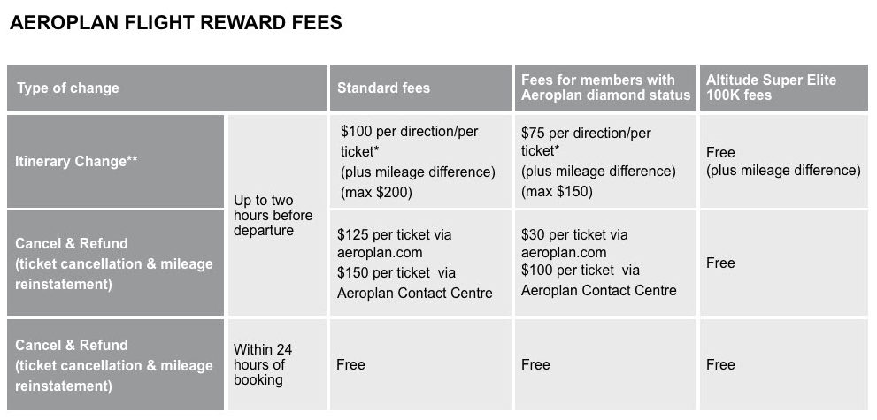 If you have Aeroplan Diamond status, this change fee is reduced to $75 per direction per person, whereas if you have Super Elite status the fee is waived entirely.