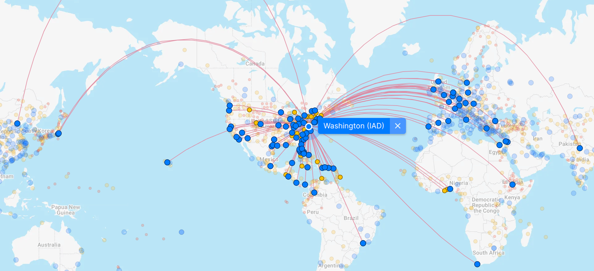 Both eastbound flights arriving in the late afternoon or early evening, which means there should be plenty of opportunities to grab a connecting flight to Europe or the Middle East from Washington, which often depart in the latter part of the evening.
