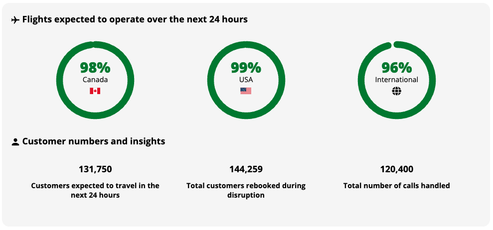 Air Canada’s 40,000 coworkers, with their exceptional commitment and expertise, have allowed us to restore operations ahead of plan. We now expect to be operating very close to our normal schedule tomorrow. We deeply apologize to all customers whose travel plans were disrupted, and we’re committed to making things right for all customers — particularly those who were stranded during their trip. Earlier this week, we put in place a special commitment to reimburse out-of-pocket transportation costs, including on other airlines, rail, ground or ferries. Today, we are taking another step forward, delivering with our policies to make things right. This updated plan includes reimbursement for reasonable accommodation, meals, necessary transportation and other costs,” said Mark Nasr, Executive Vice President and Chief Operations Officer at Air Canada.