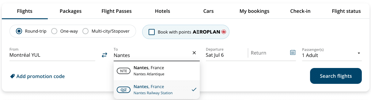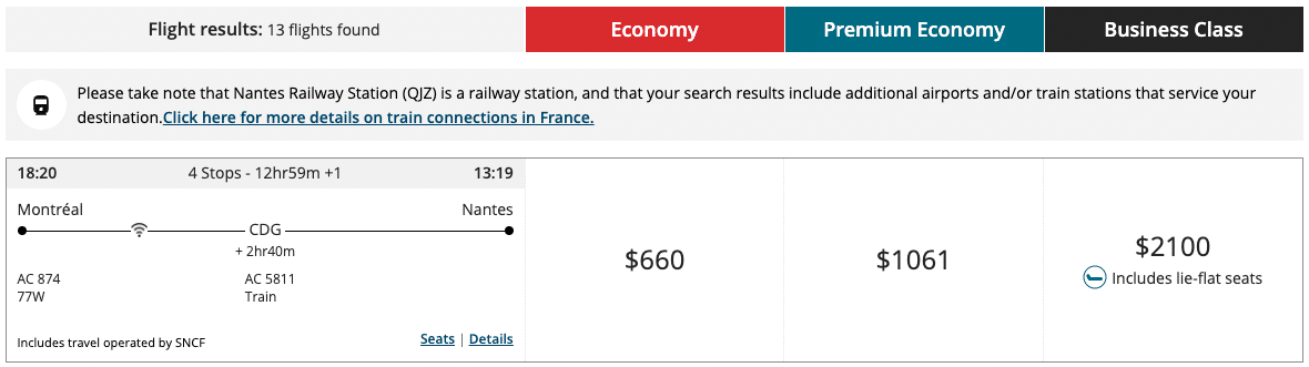 For eligible destinations, the booking process is live on the Air Canada website, and intermodal air/rail itineraries may be booked using cash. Air/rail intermodal bookings aren’t available via Aeroplan at this time.