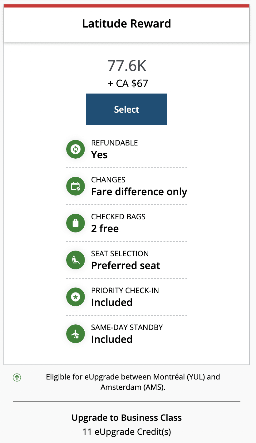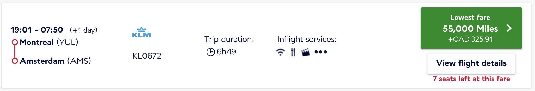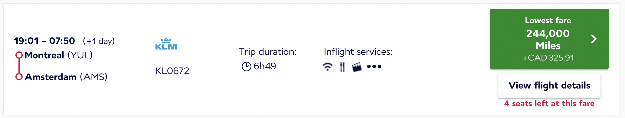 For a point of comparison, KLM also operates a direct flight between Montreal and Amsterdam, which can be booked using Air France/KLM Flying Blue miles.