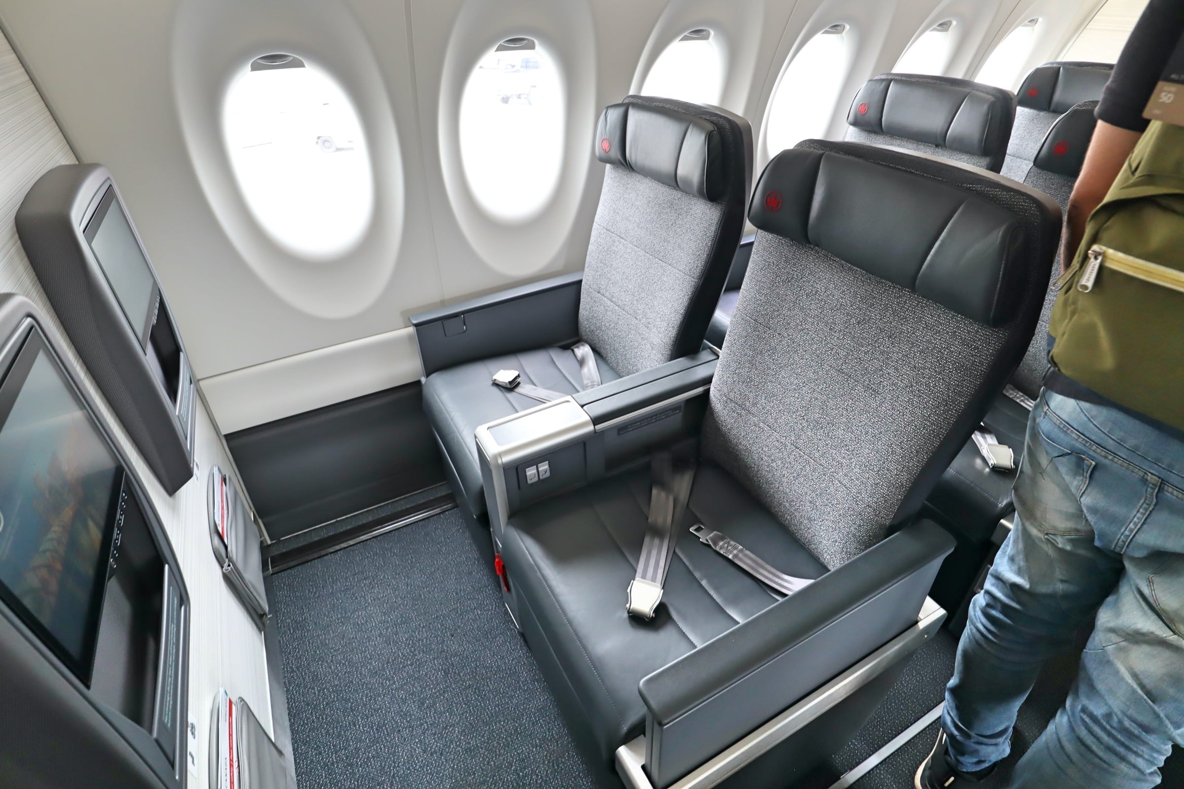 The business class seat is nearly identical to the seat Air Canada offers on the Airbus A220, which is significantly better than the recliners on older A320 and A321 aircraft.