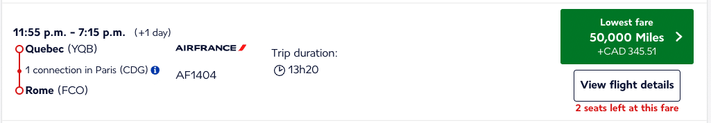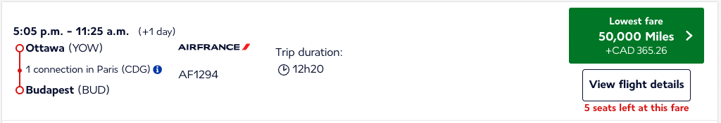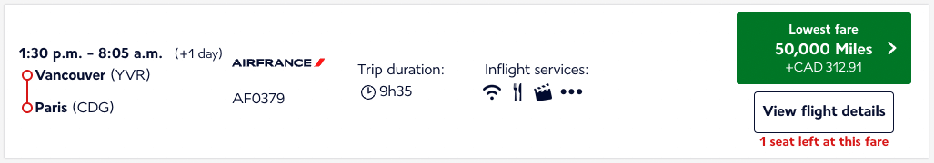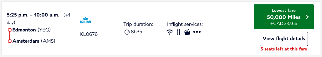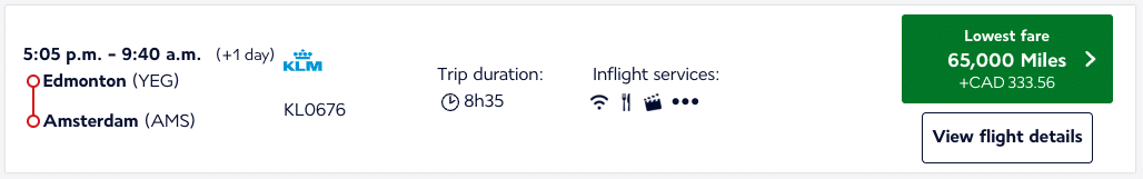 At the same time, a one-way flight from Edmonton to Europe priced out as low as 65,000 Flying Blue miles.