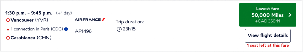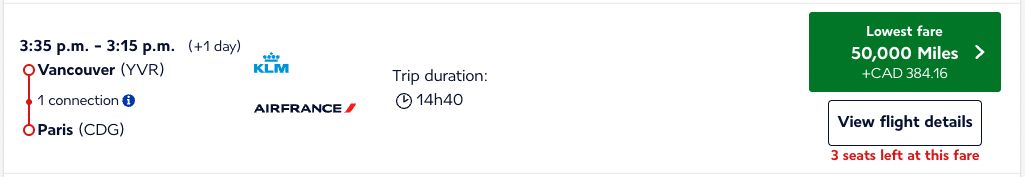 However, Flying Blue has now adjusted the minimum award levels, such that you’ll now see the same minimum prices for a flight from Vancouver to Paris, as you will from Montreal to Paris.